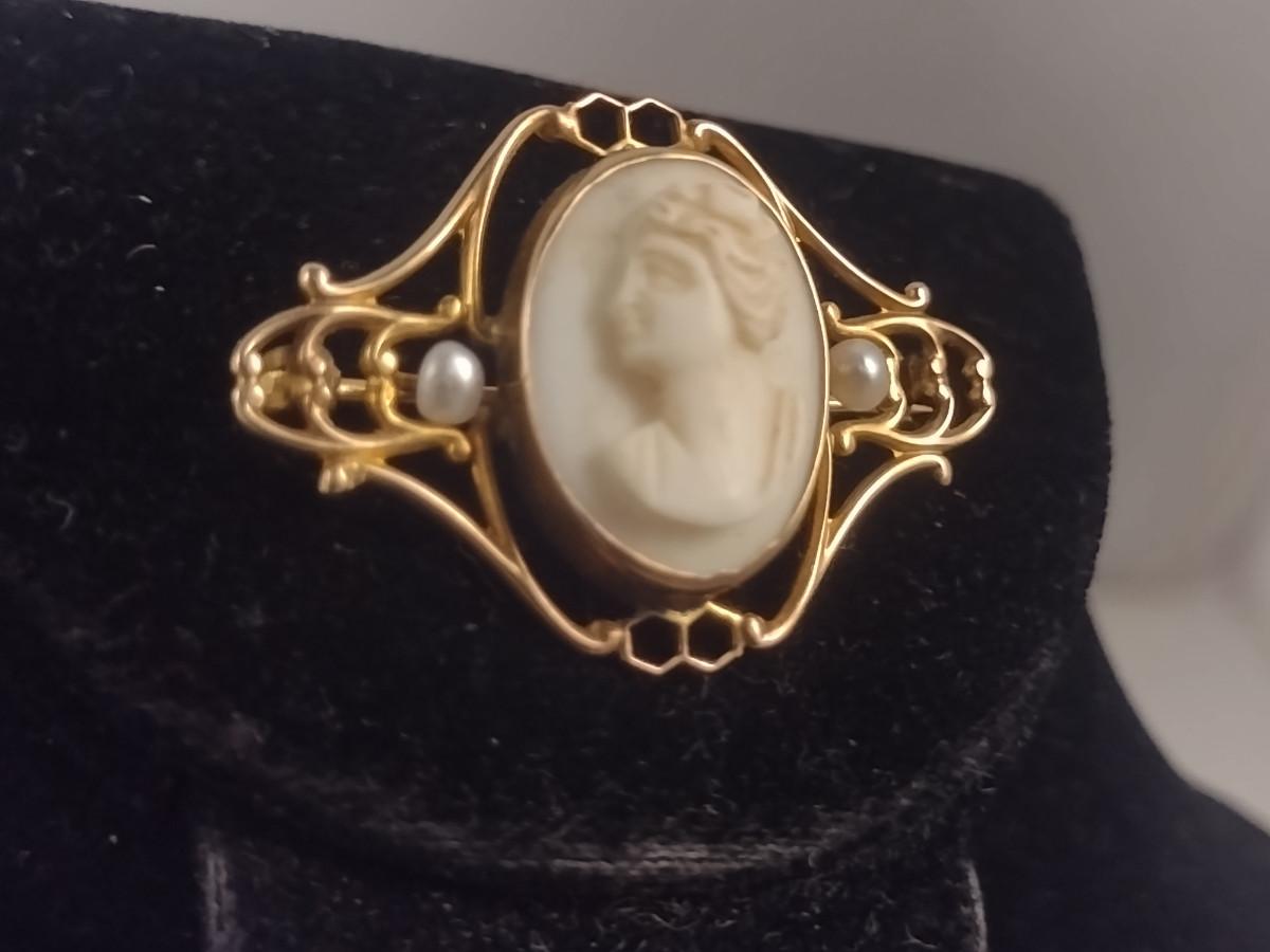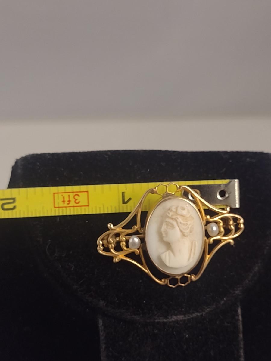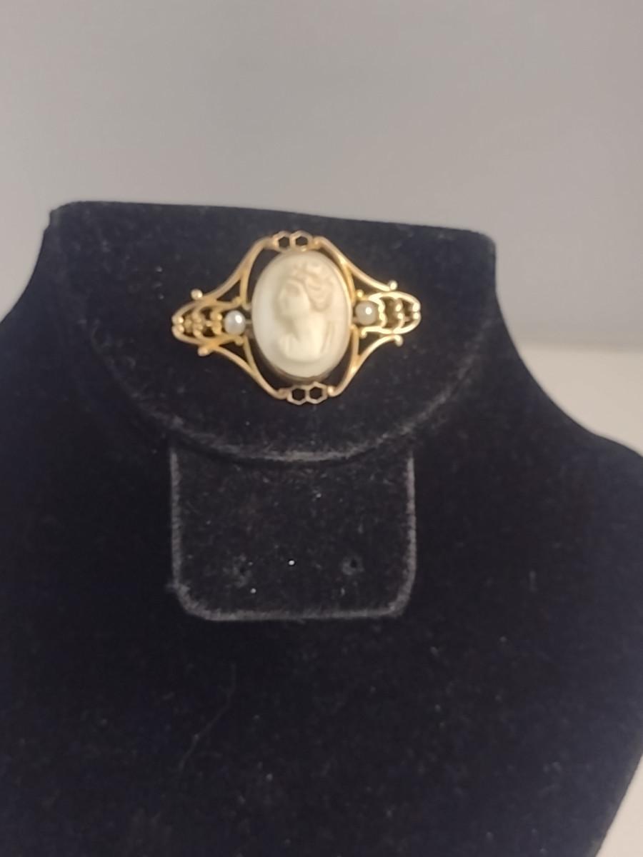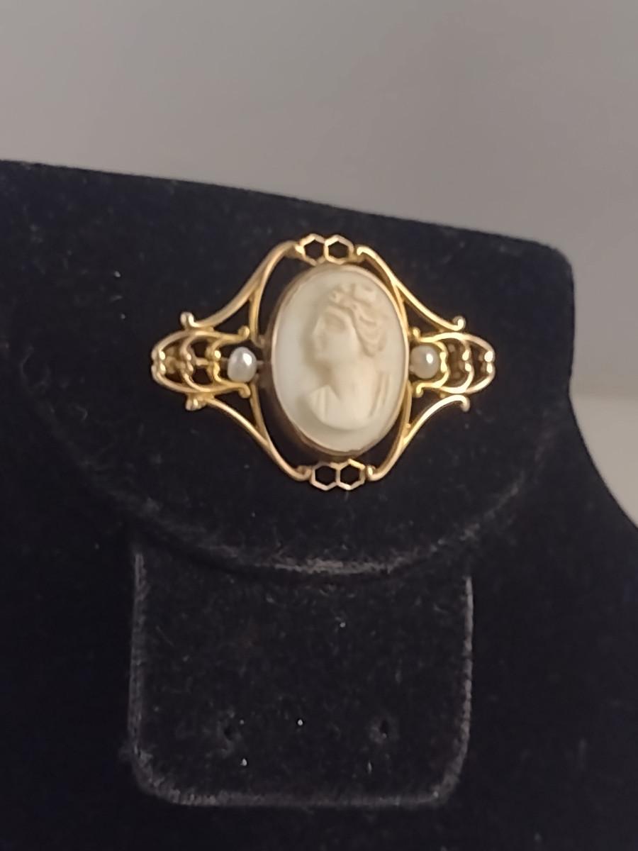 10 Karat Yellow Gold Cameo Brooch with Seed Pearls - Approx Total Weight 2.7 Grams (#37)