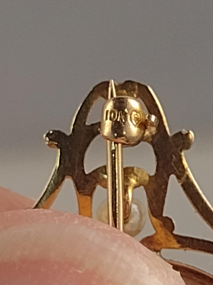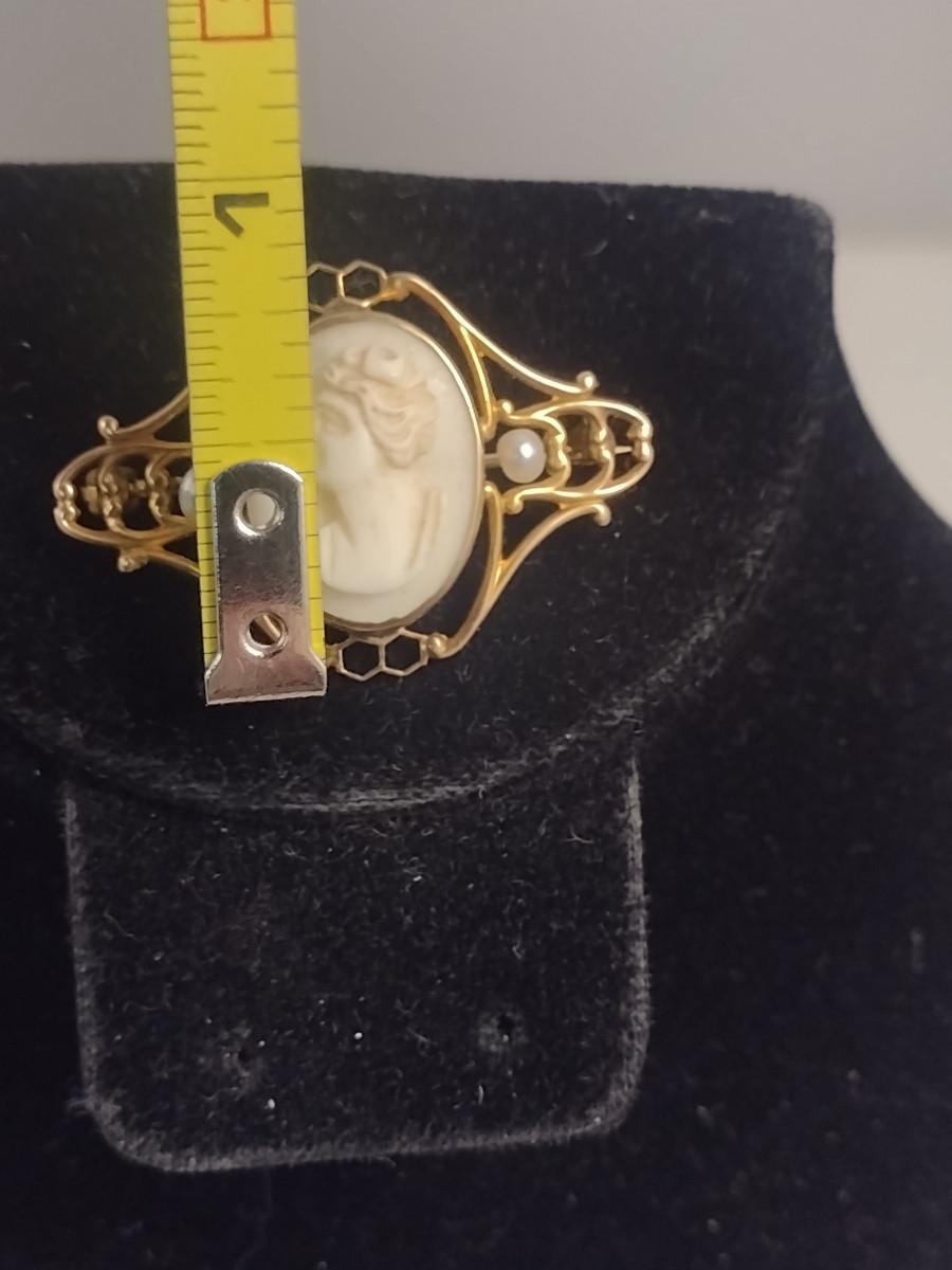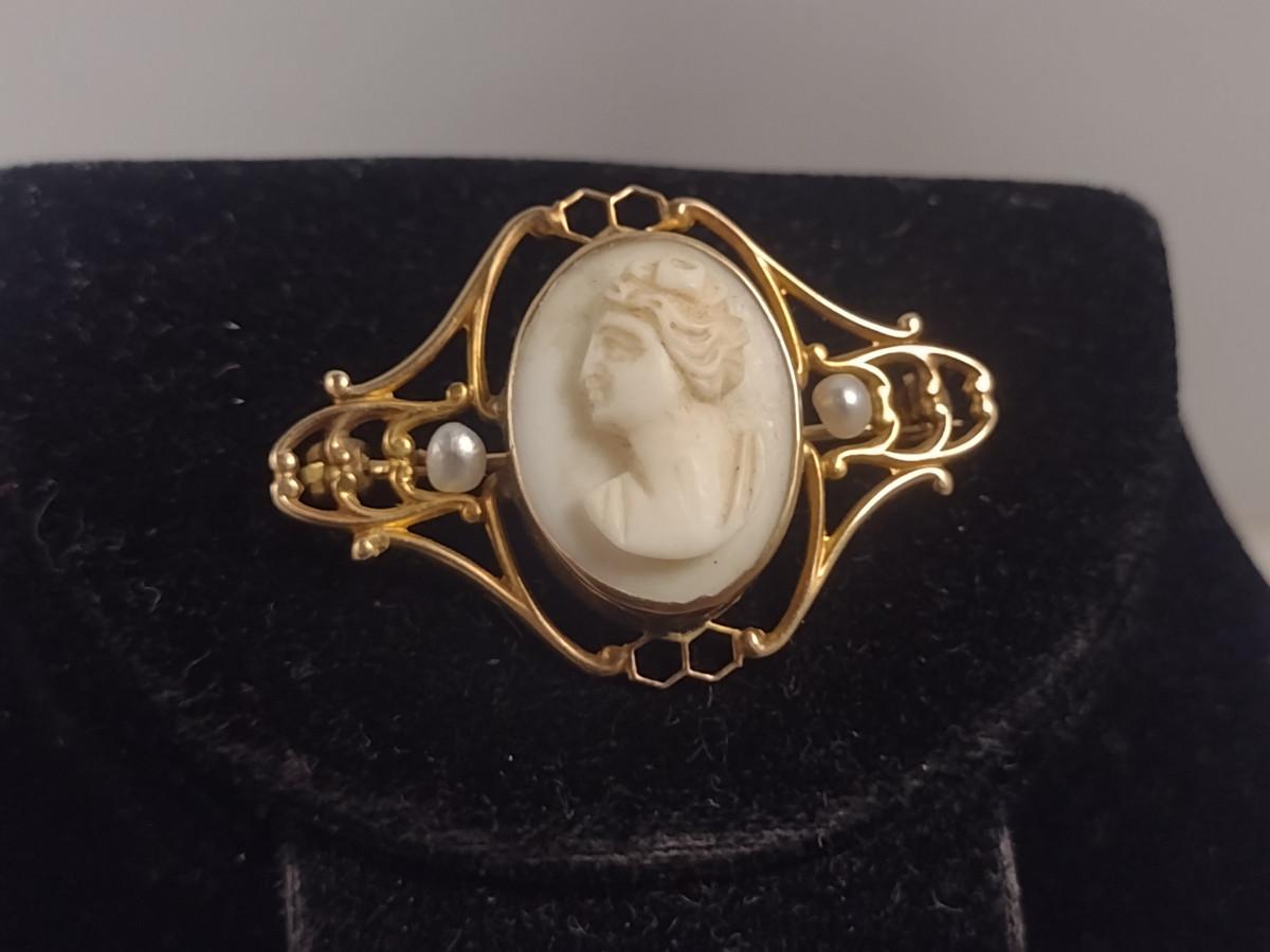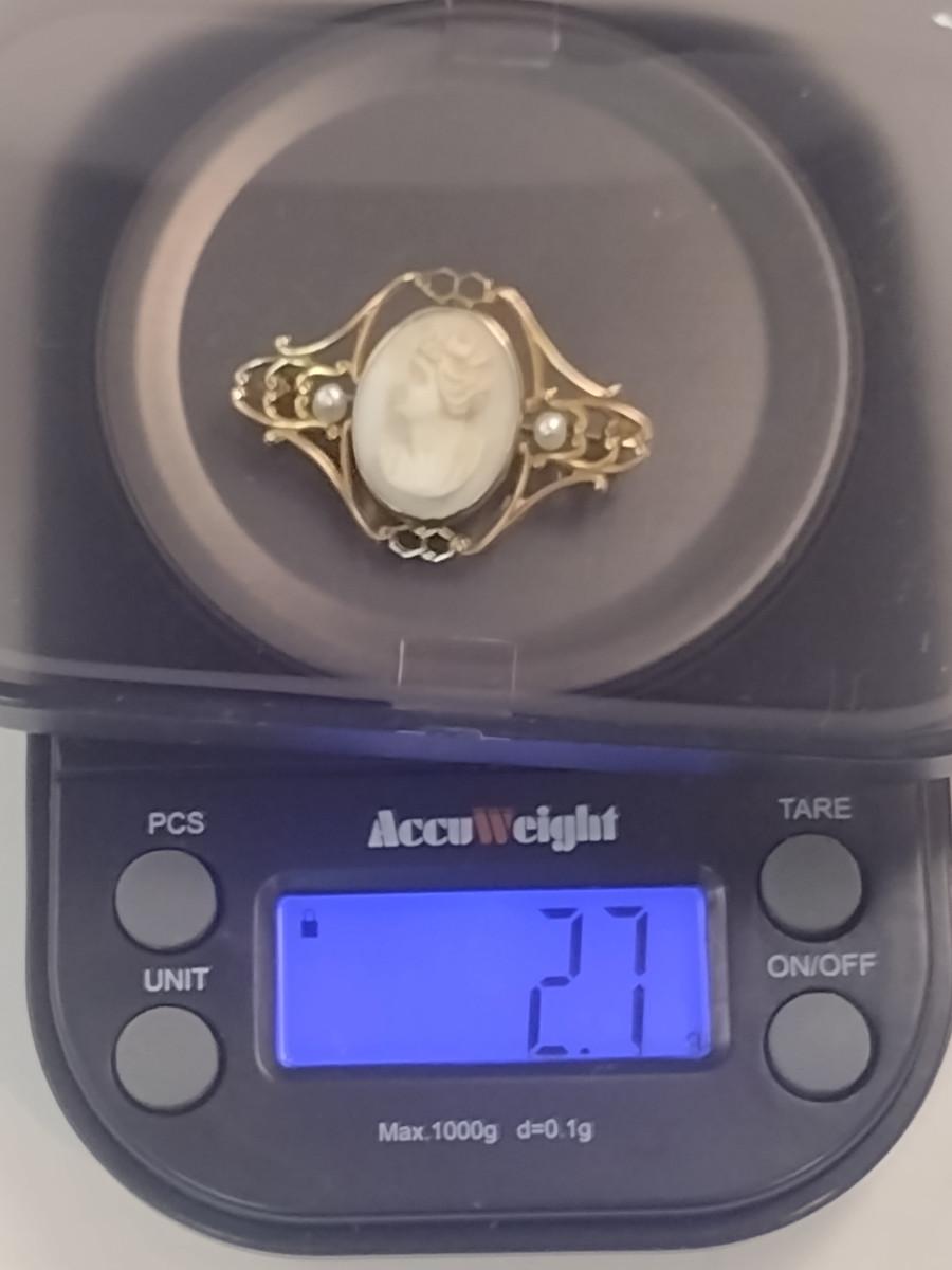 10 Karat Yellow Gold Cameo Brooch with Seed Pearls - Approx Total Weight 2.7 Grams (#37)