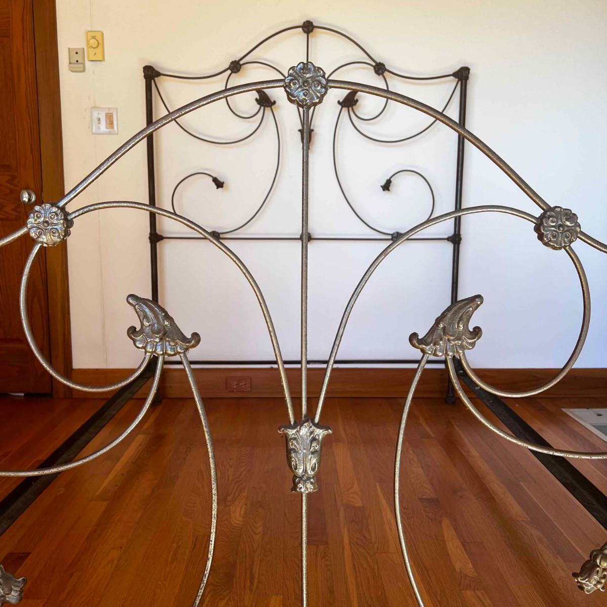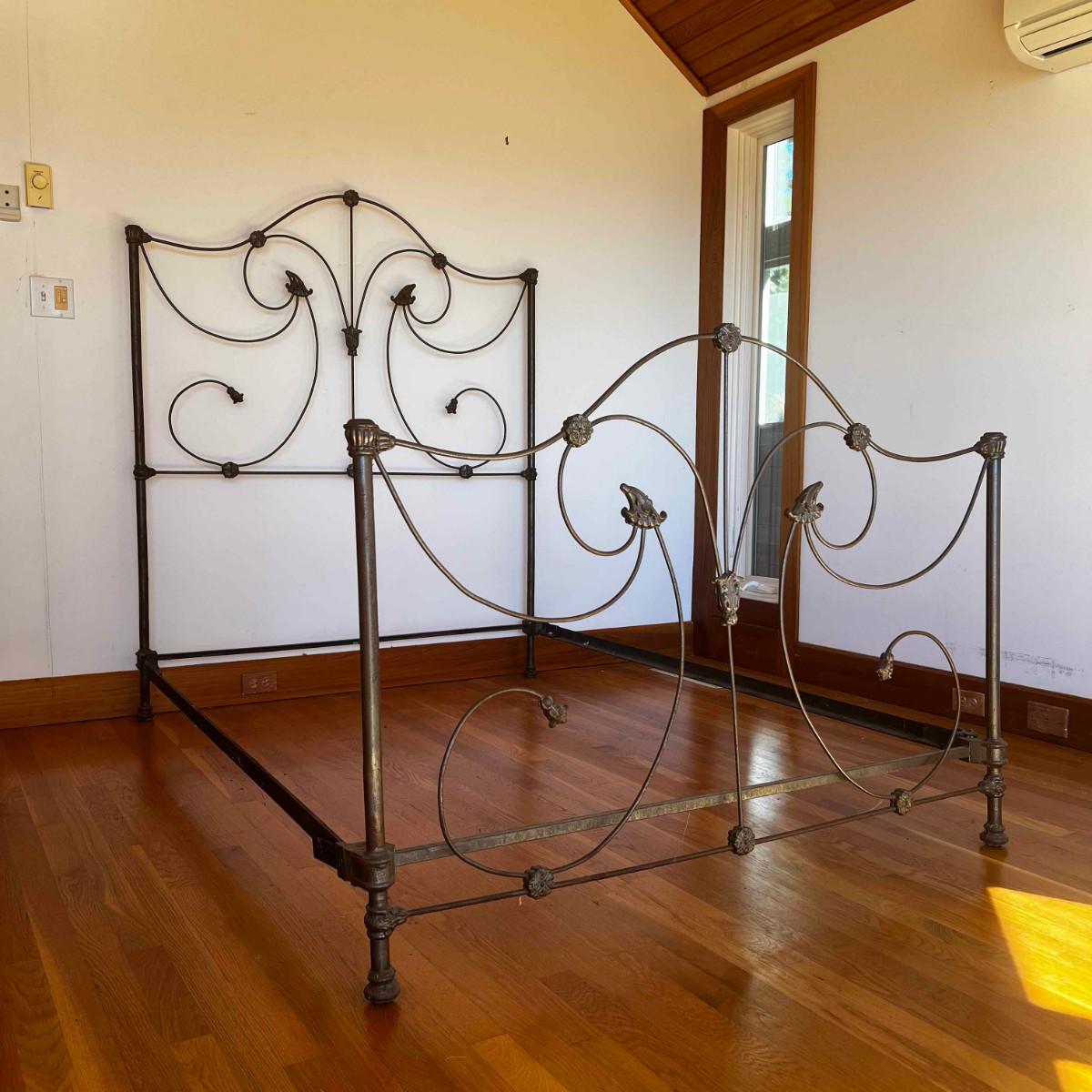 1018 Vintage Iron & Brass Bed Frame With Scrollwork Motif