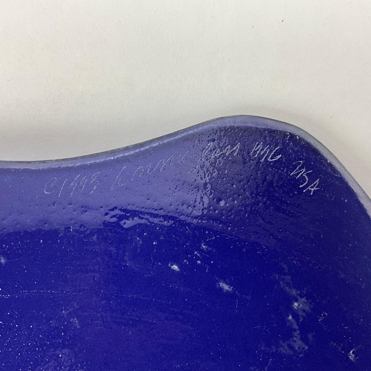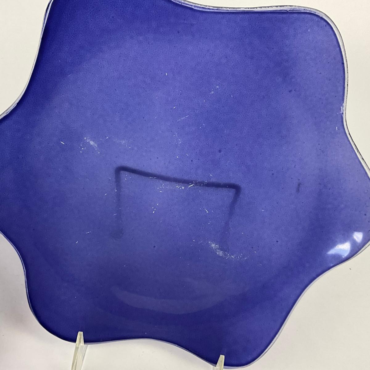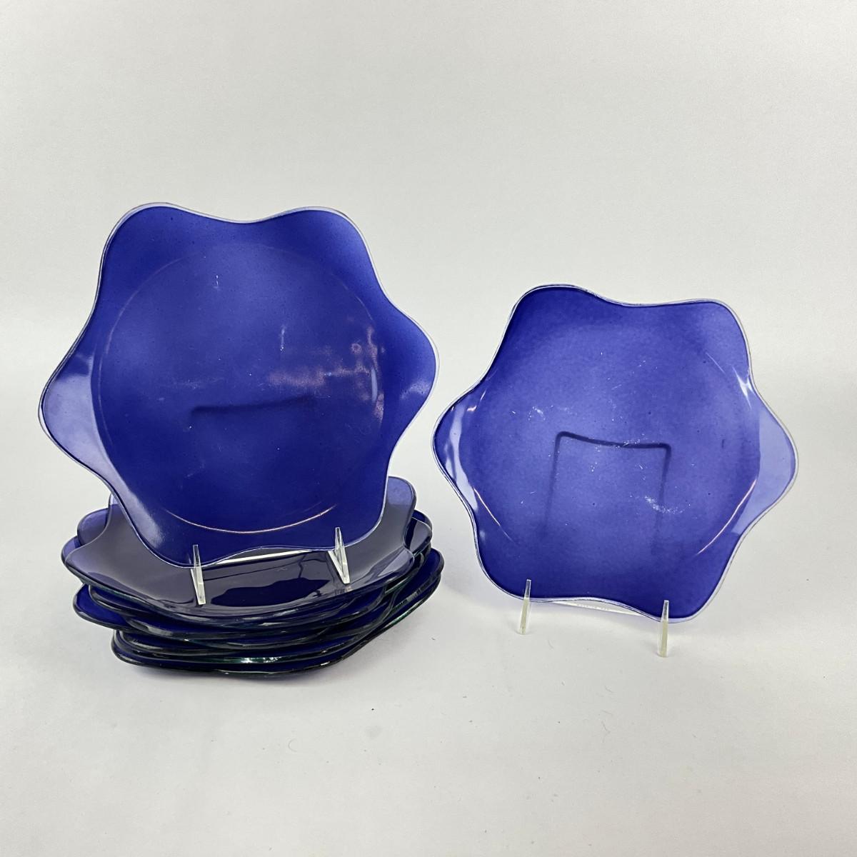 1037 Set Of 9 Hand-Crafted Scalloped Blue Annie Glass Plates