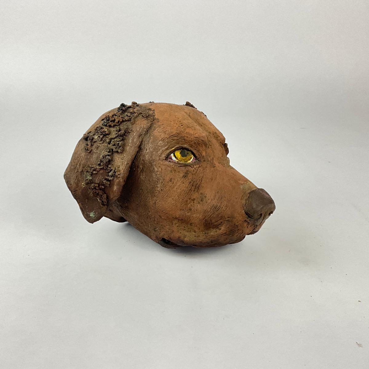 1038 Antique Heavy Metal Dog Head Sculpture By Baird Jannarl