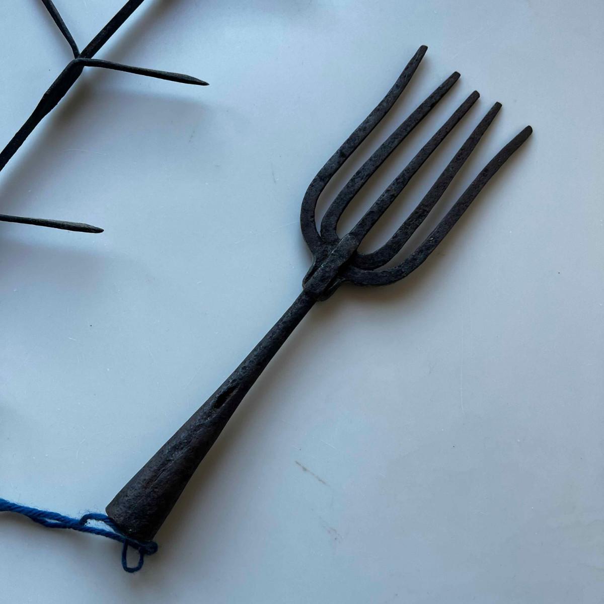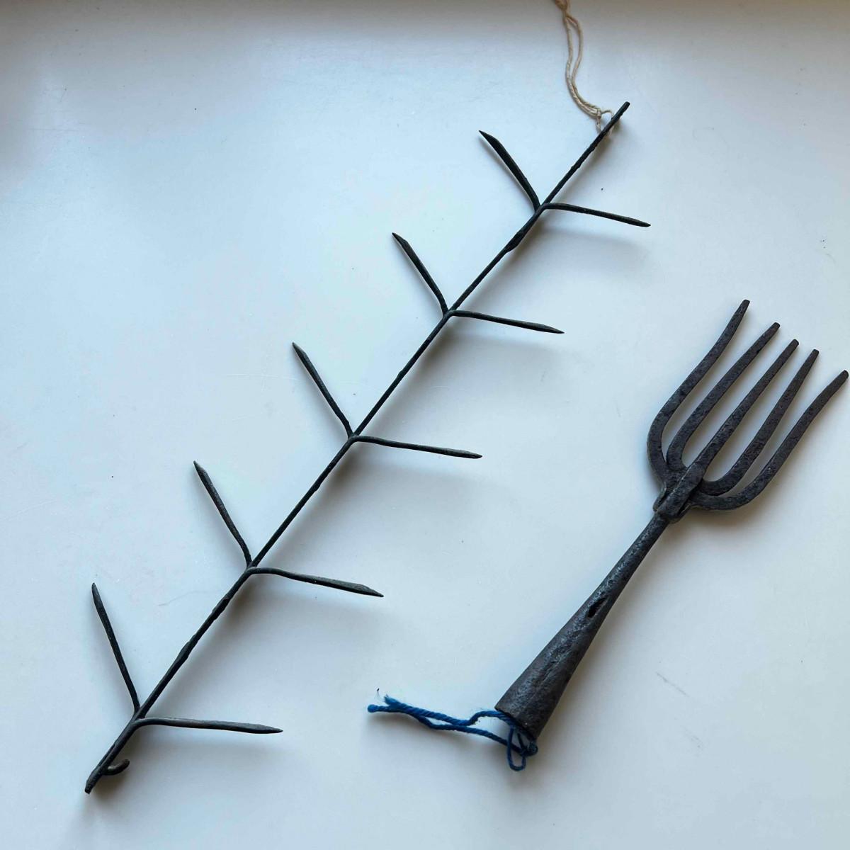 1065 Antique Iron Fishing Spear Head Pitchfork With Wrought Iron Drying Rack