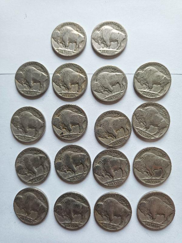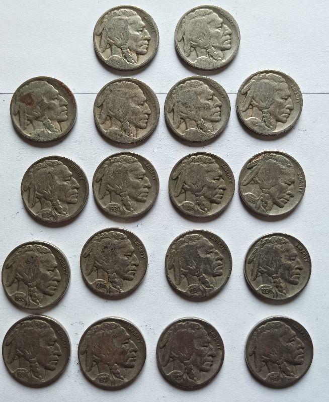 108.     18 buffalo nickels mixed dates