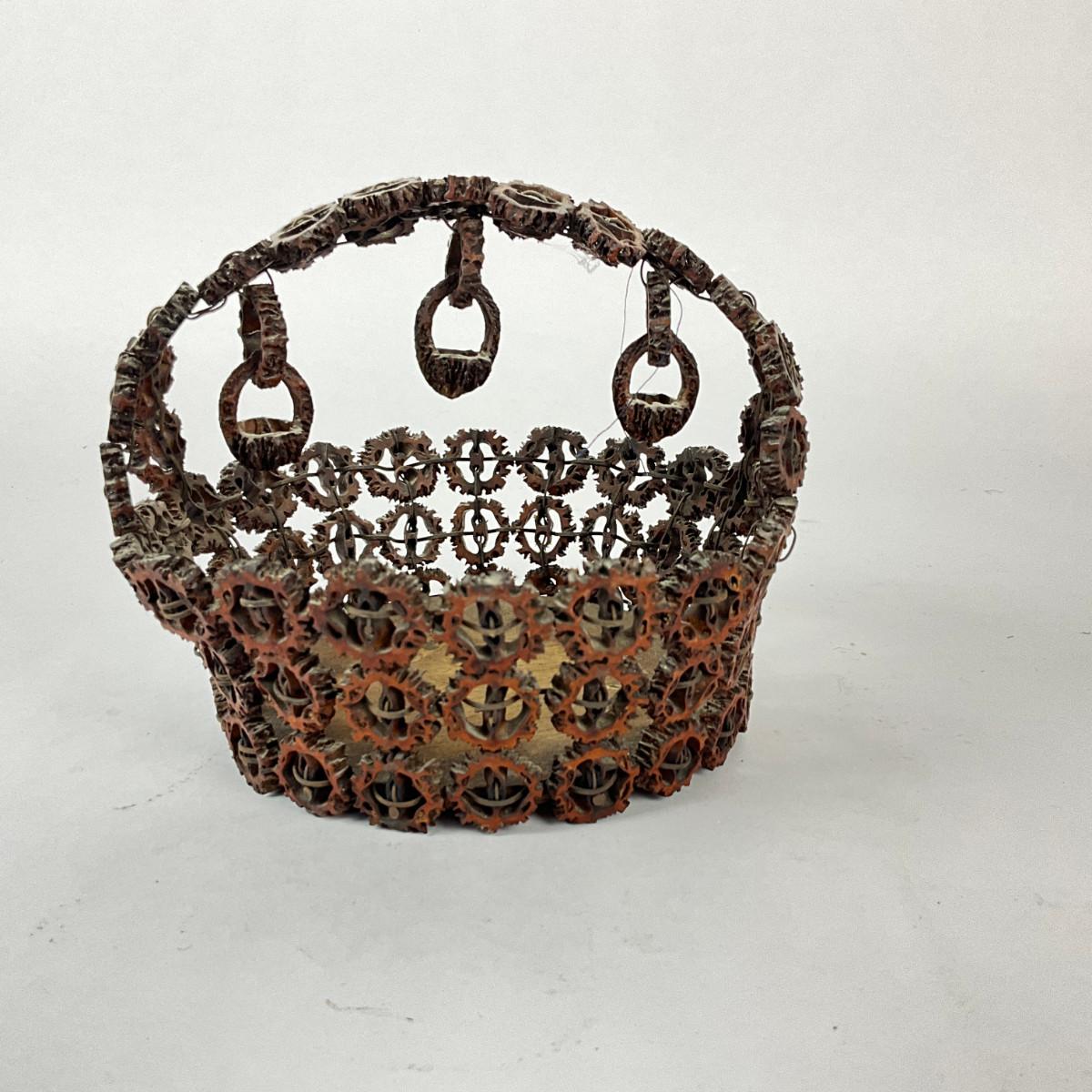1080 Antique Folk Art Basket Made Of Walnut Shells