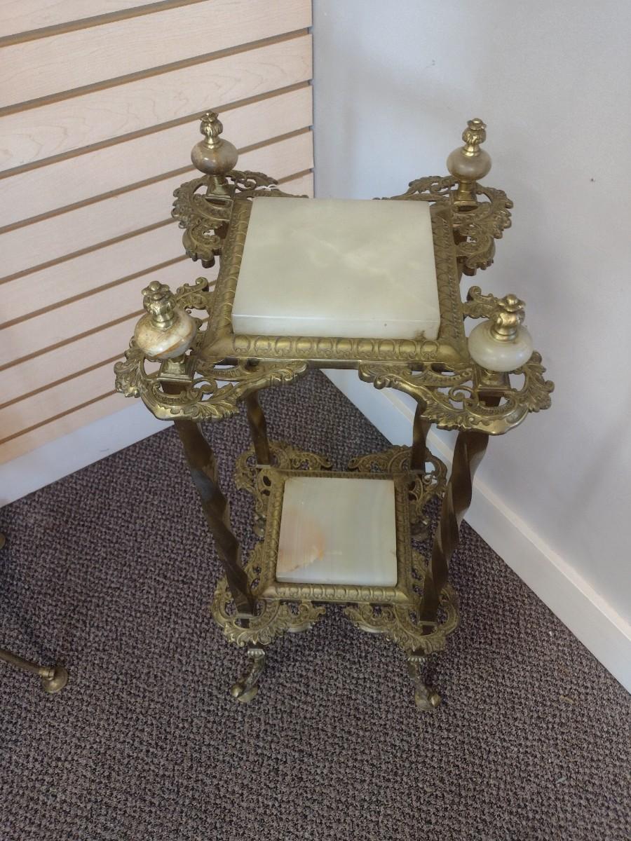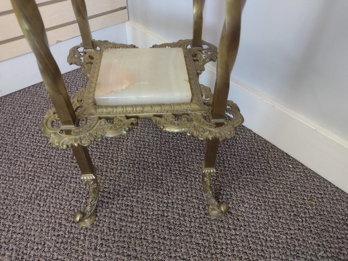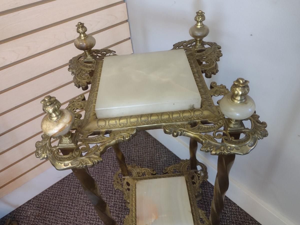 Antique Brass Victorian Double Tier Plant Stand with Onyx Tile Inserts
