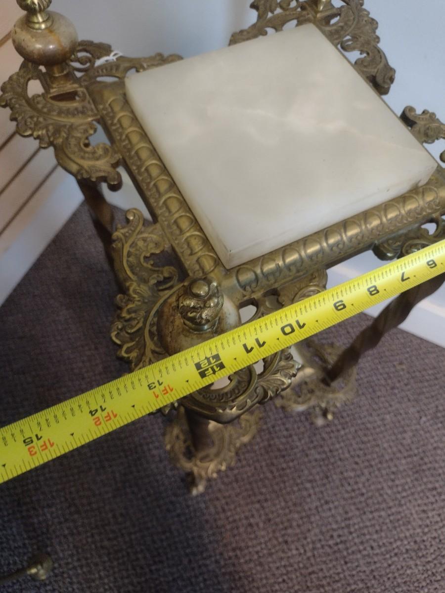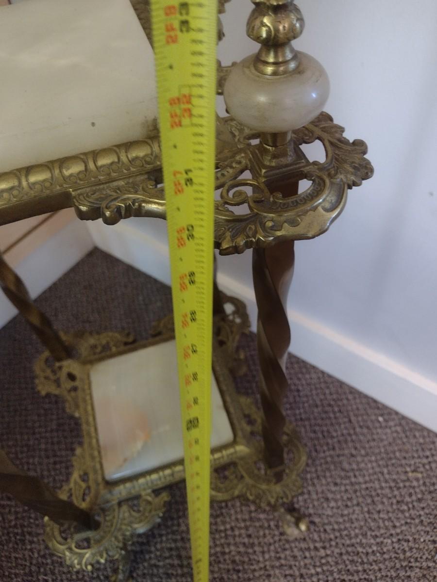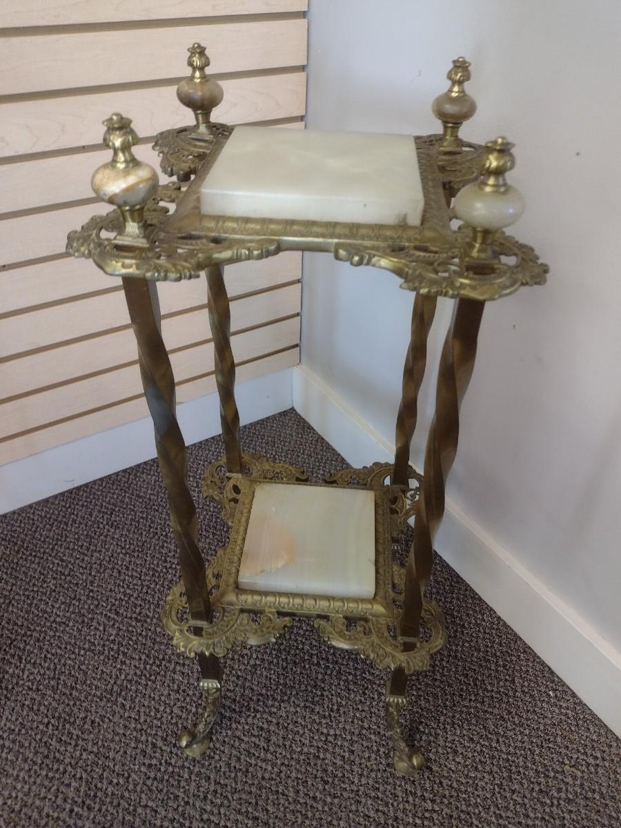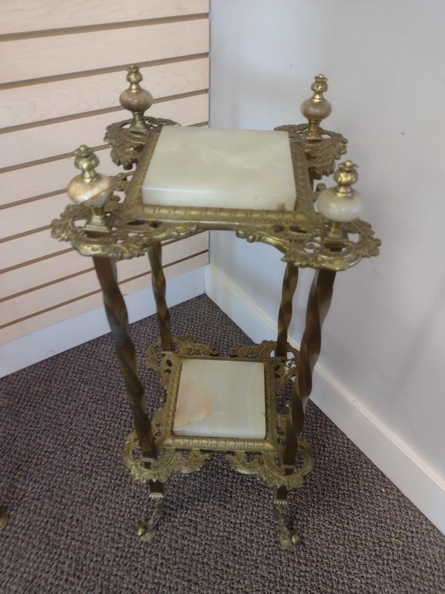 Antique Brass Victorian Double Tier Plant Stand with Onyx Tile Inserts