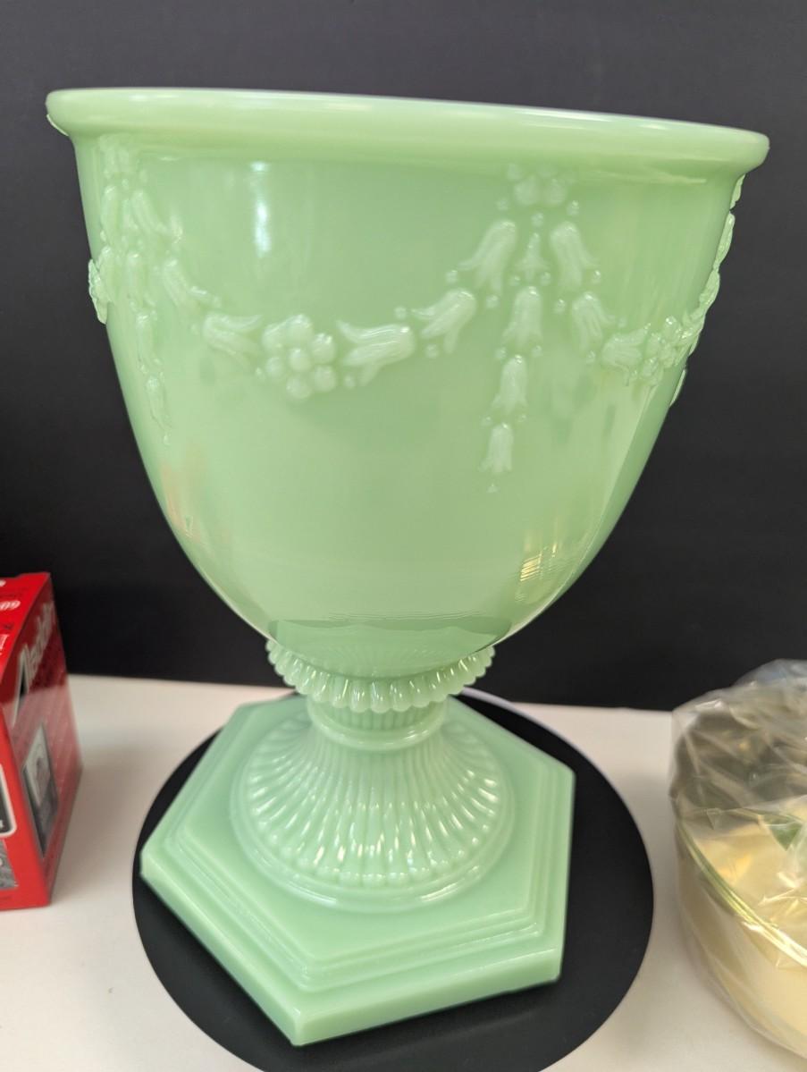 Aladdin Green Florentine Kerosene Oil Lamp Moonstone Jade Jadiete Glass Vase