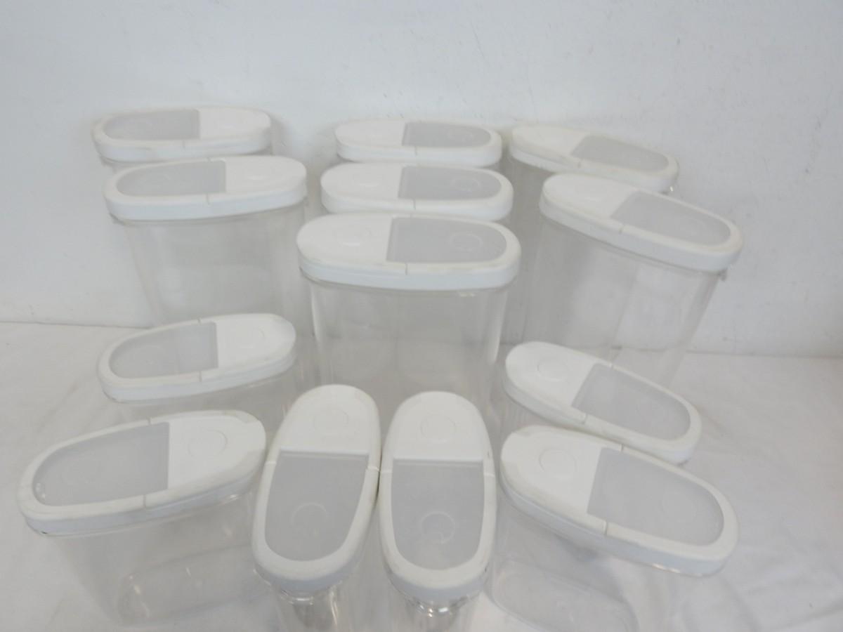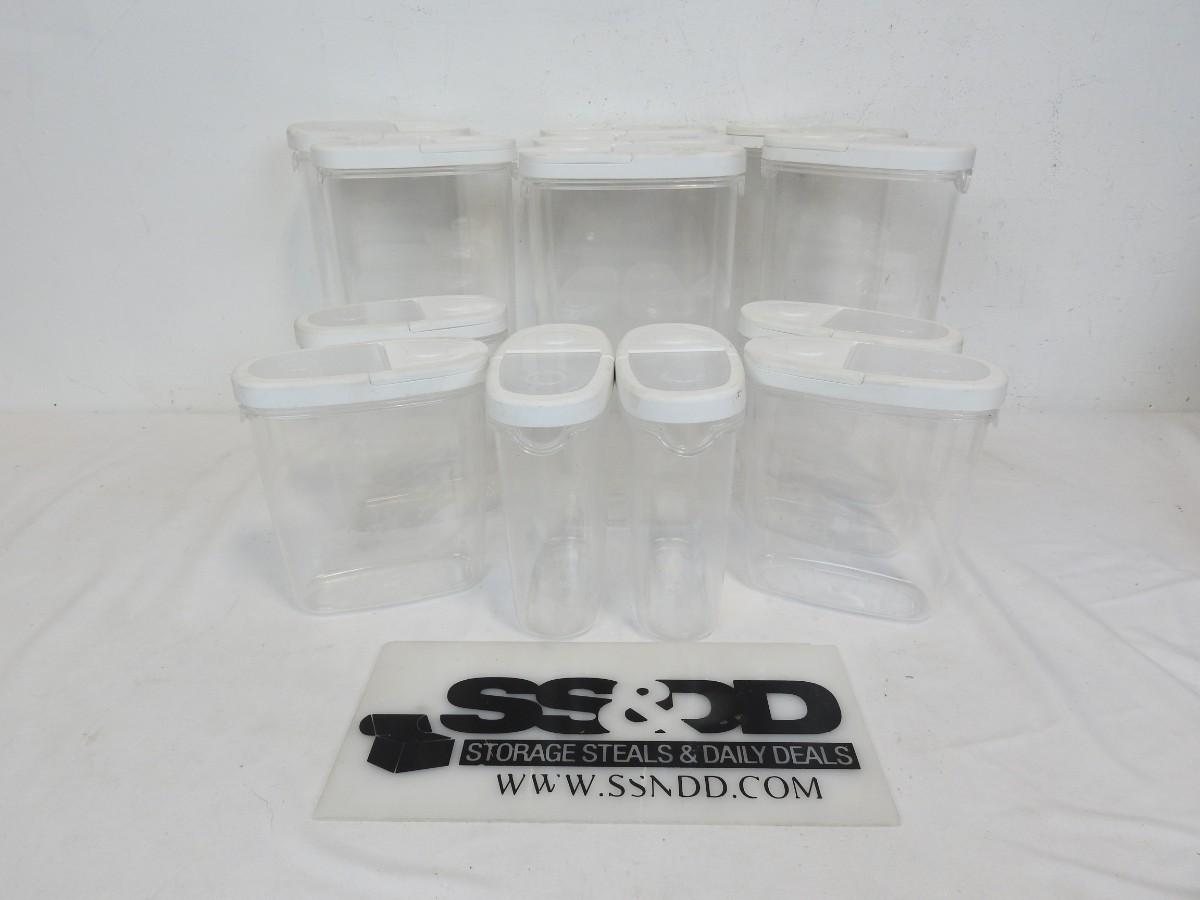 13 Ikea Food Pantry Containers, Clear w/White Lid, 7 Tall, 6 Small