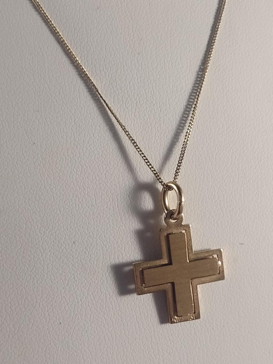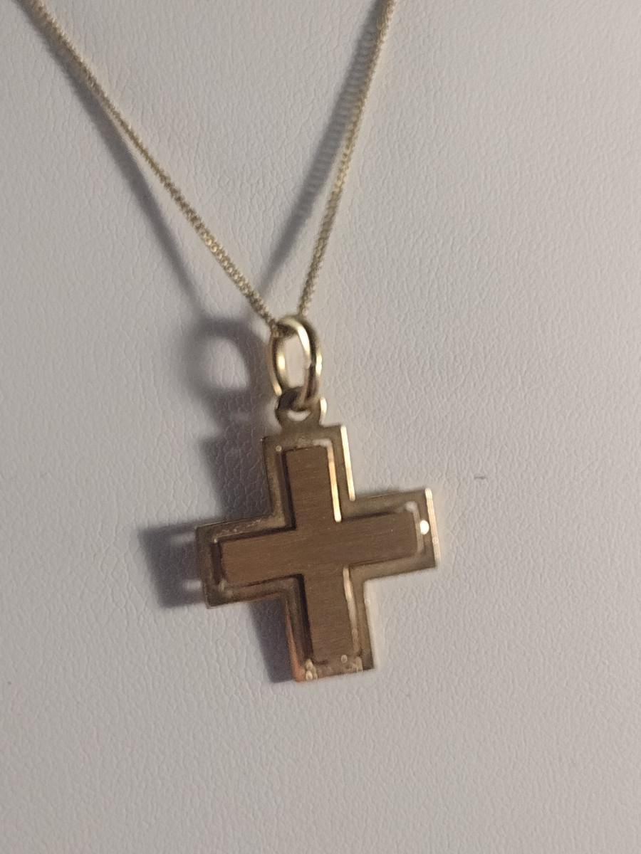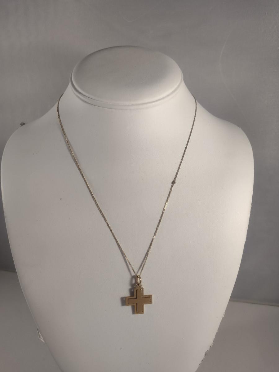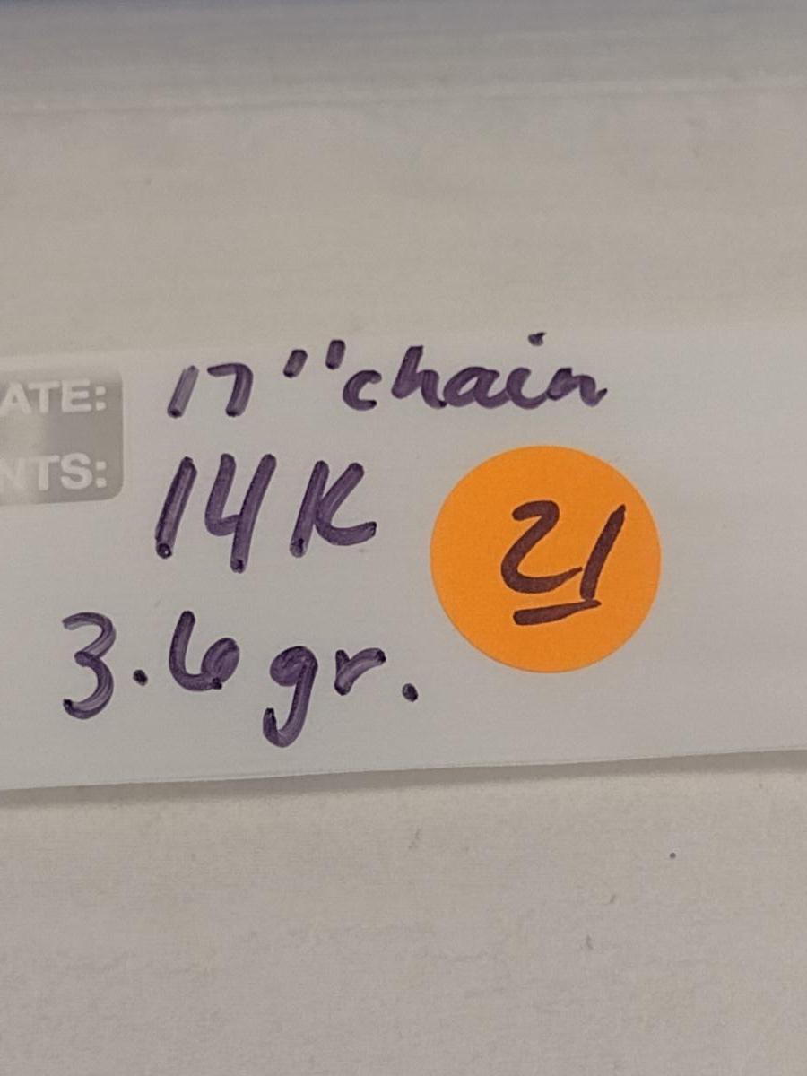 14 Karat Yellow Gold Pendant with Chain- Approx 3.6 Grams Total Weight (#21). Necklace is approx 17" long. Necklace has small knot that will need to be worked out.