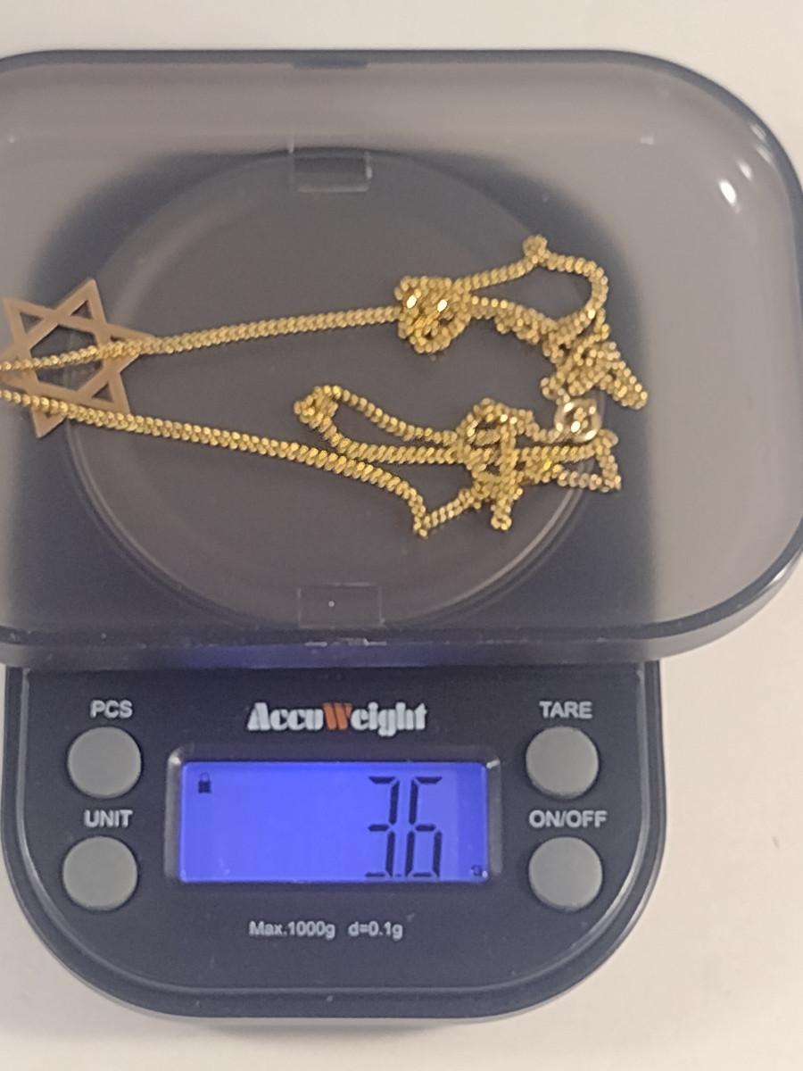 14 Karat Yellow Gold Star Pendant with Chain- Approx 3.6 Grams Total Weight (#22). Necklace is approx 18" long.