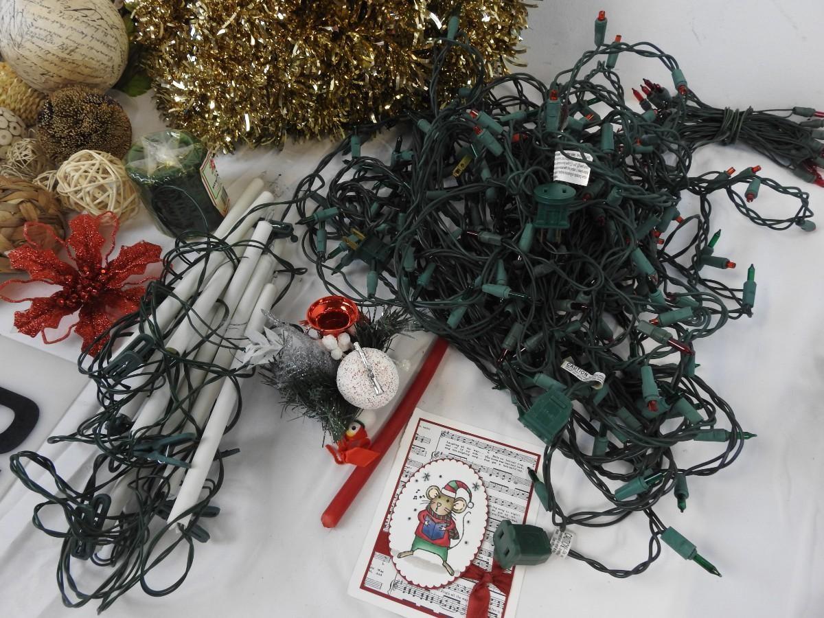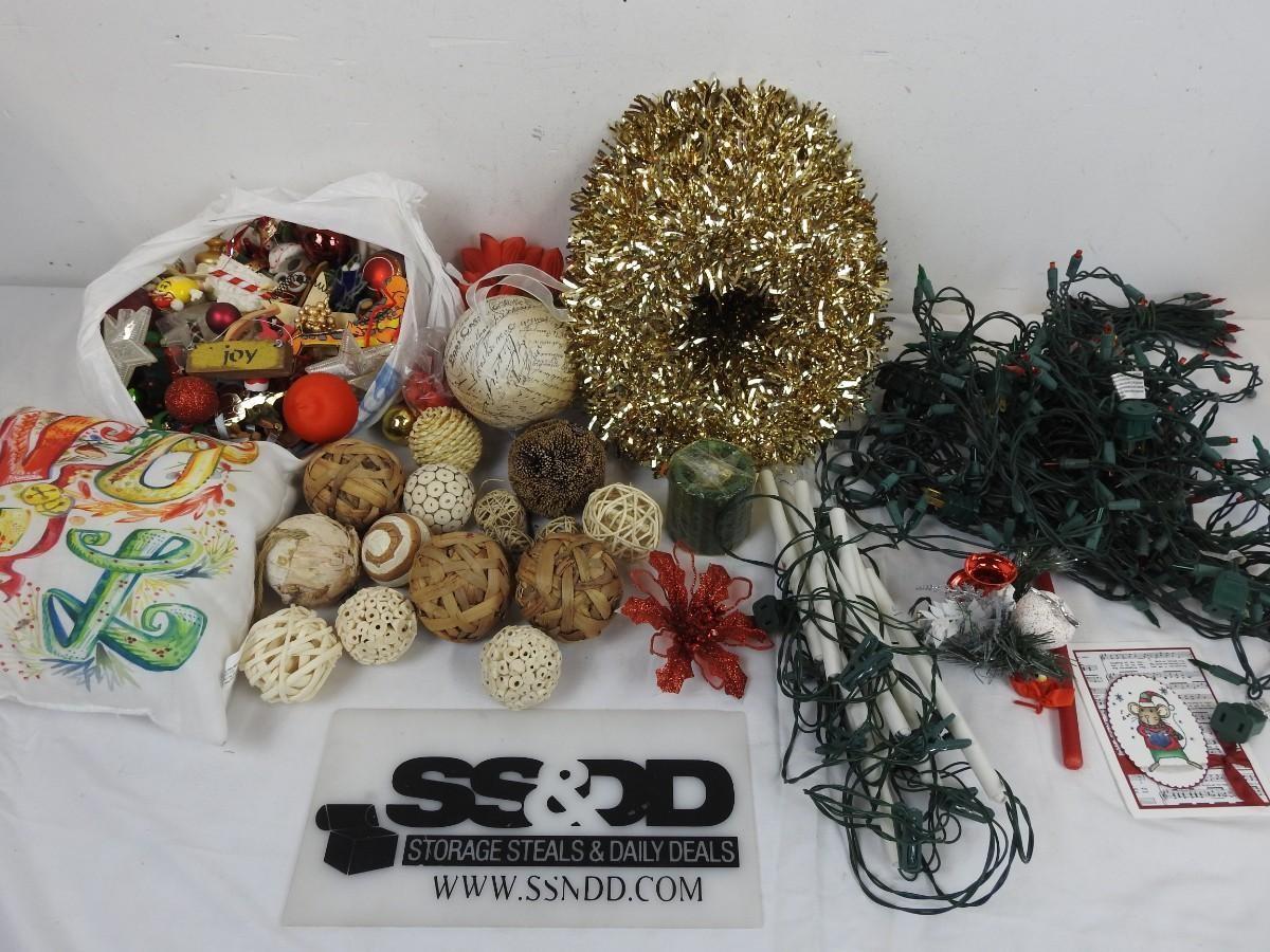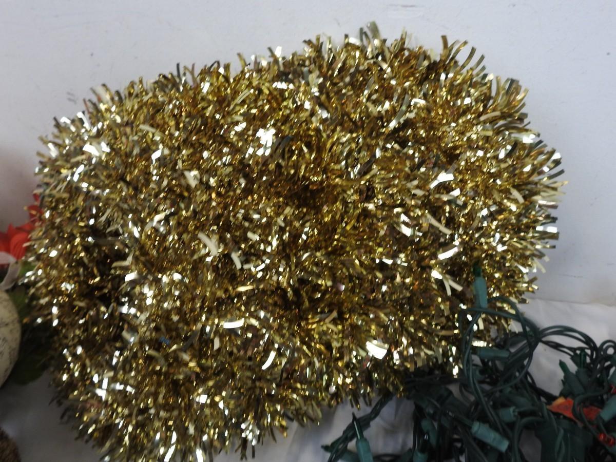 16+ Christmas Lot: Golden Wreaths, Lights, Decor Balls, Ornaments
