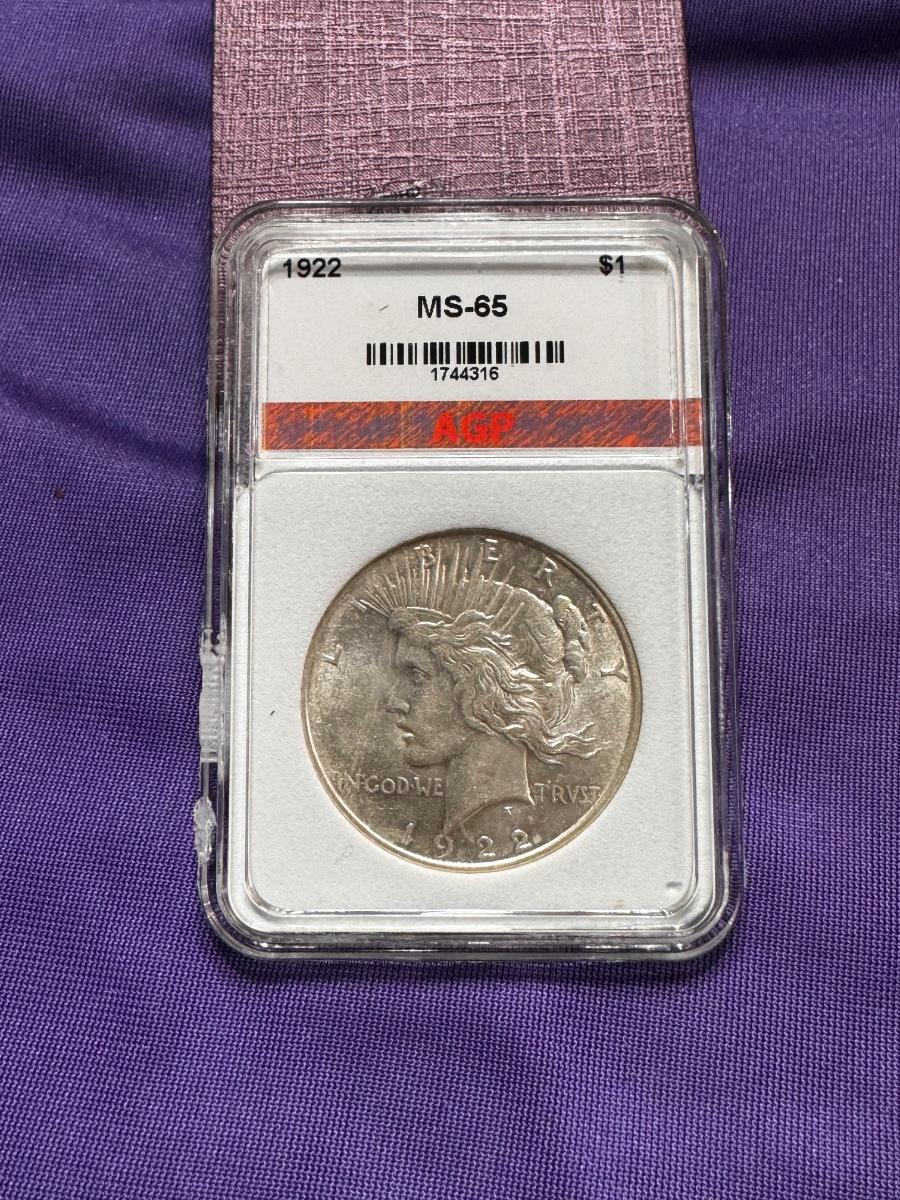 1922 Peace Dollar Graded MS 65 (PCGS Est. 325)