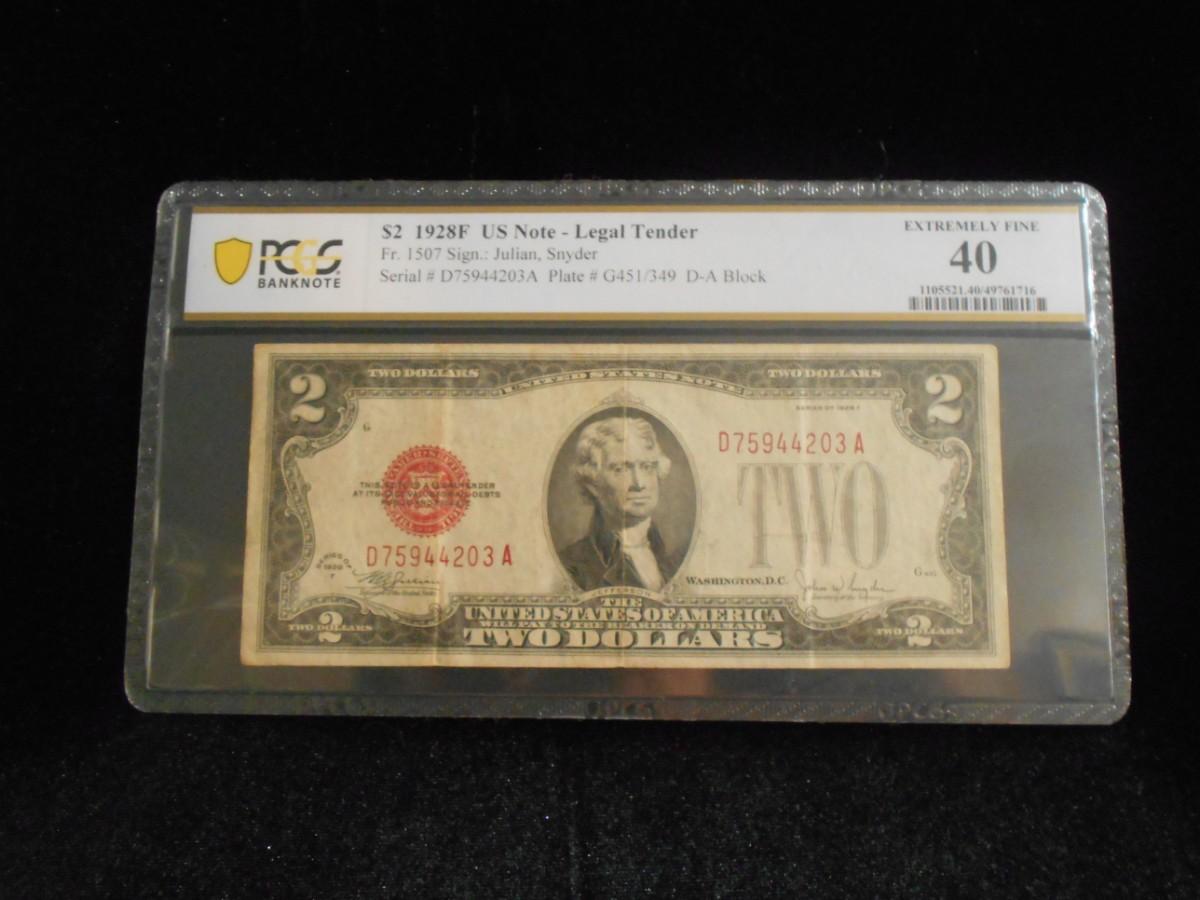 1928 F 2 Dollar Bill Graded 40 Extremely Fine