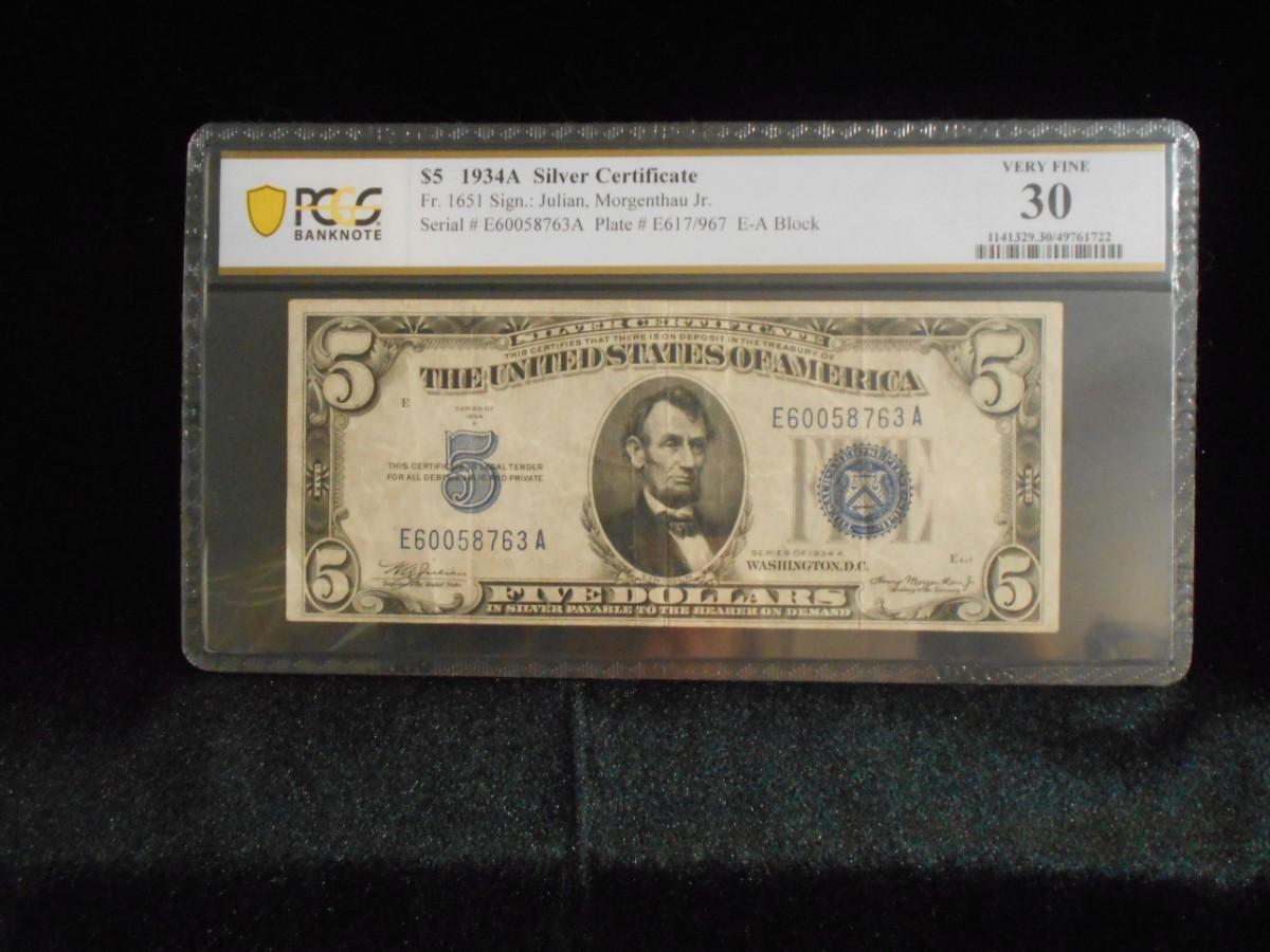 1934 A 5 Dollar Silver Certificate Graded Very Fine 30
