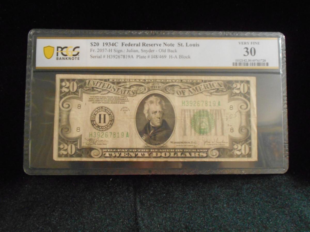 1934 C 20 Dollar Bill Graded Very Fine 30