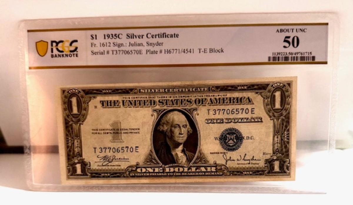 1935C $1 Bill Silver Cert. Graded AU 50