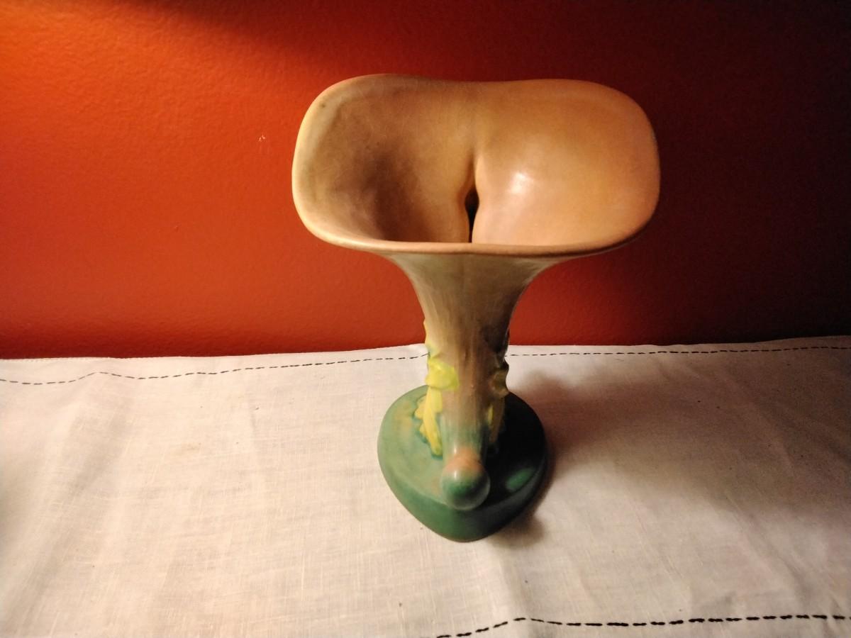 1942 Roseville Pottery Peony Cornucopia Vase, Shape 171-8, Coral Pink