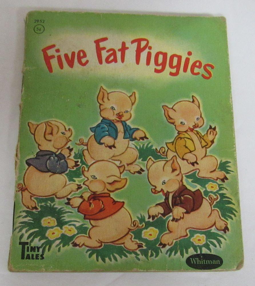 The cloth book is wrinkled and stained. Two of the tiny books have bends but are intact. The Five Fat Piggies tiny book is the best shape. Selling as is. Shipping is available at shipping cost plus $5.00 handling fee on up to 8 lots, $10.00 handling fee on 9 or more lots or two boxes.