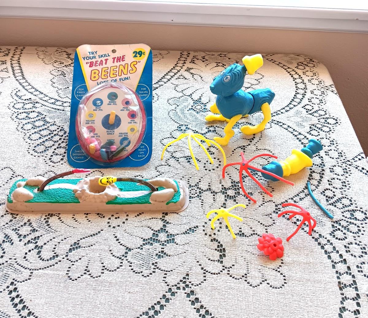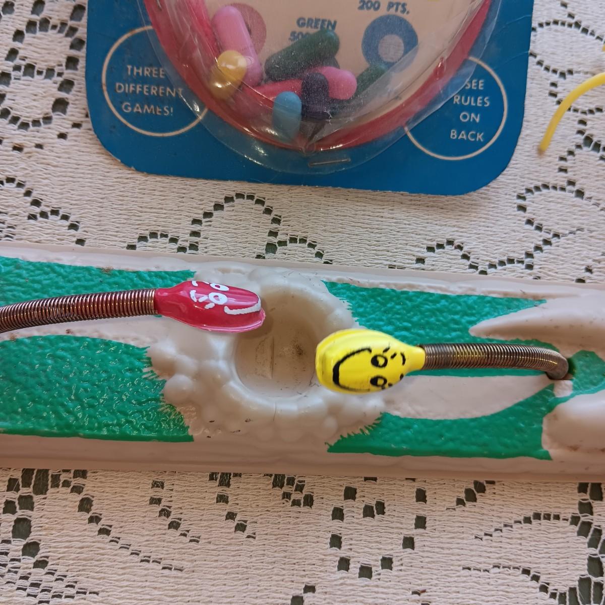 1961 "BEAT THE BEENS", MR POTATO HEAD TYPE TOY AND 2 FACES ON SPRINGS??