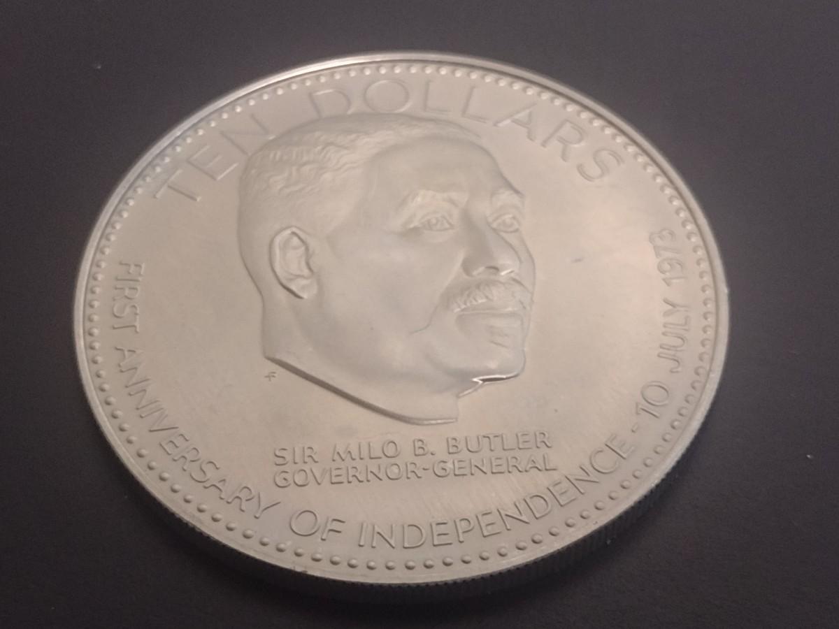 1974 Commonwealth of Bahamas First Year Anniversary of Independance Sir Milo Butler $10 Silver Coin Circulated (#34)