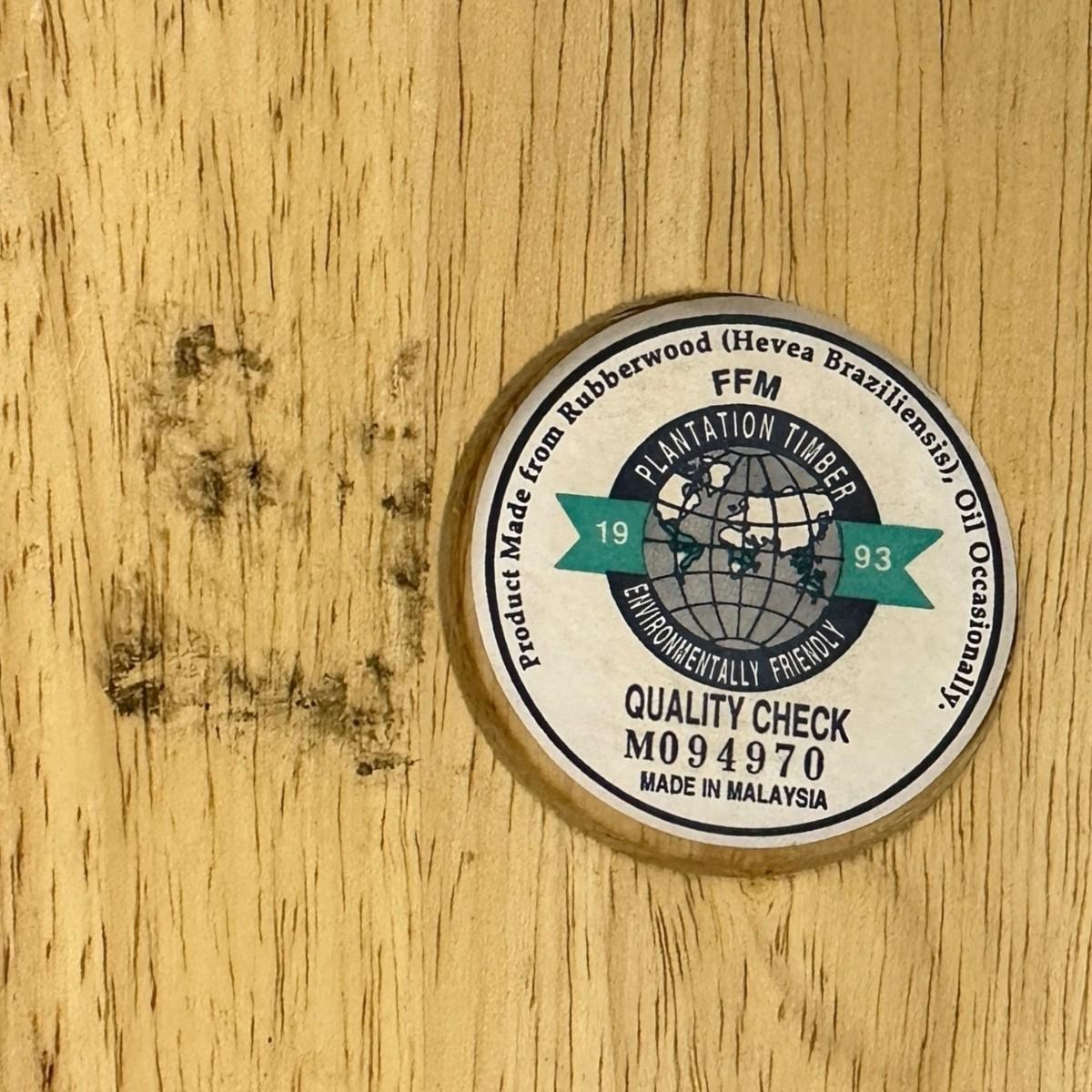1993 Rubberwood Huge Wooden Bowl Made in Malaysia; "Plantation Timber, Environmentally Friendly"