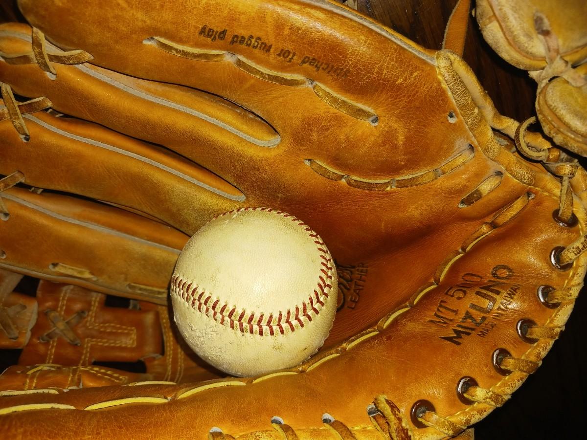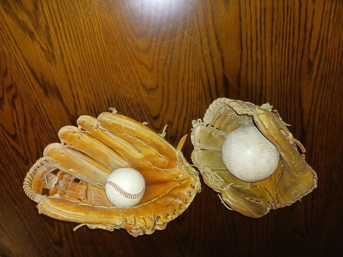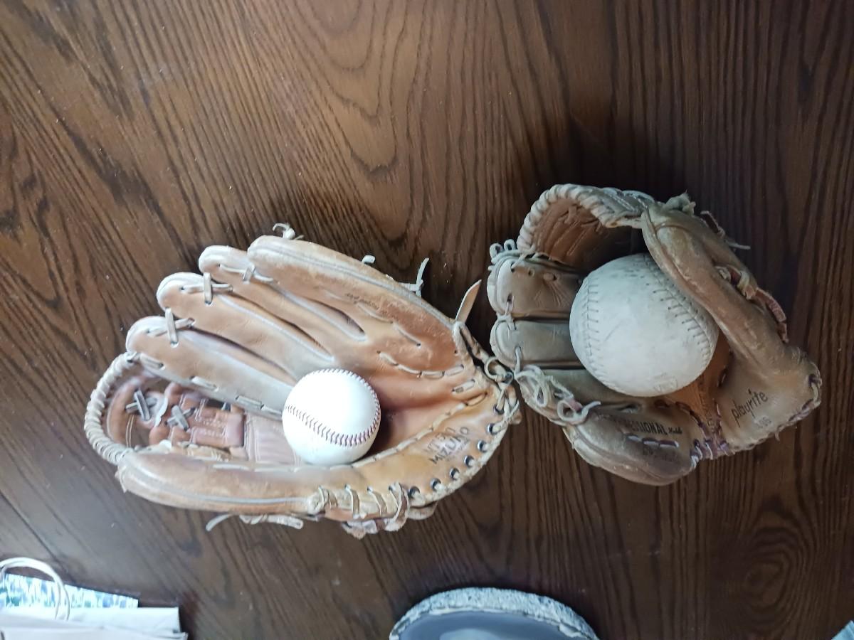 2 BASEBALL MITTS, BASEBALL AND SOFTBALL