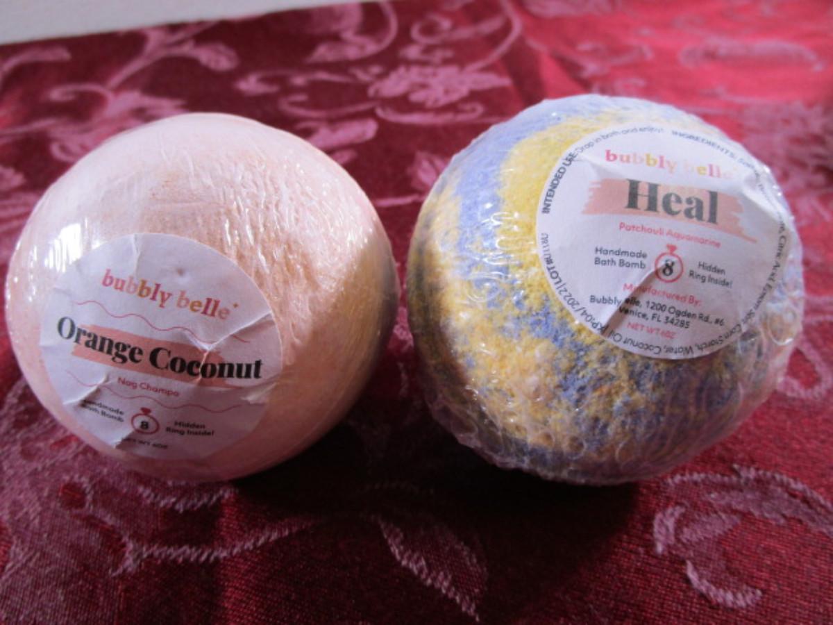 2 Bubbly Belle handmade bath bomb, hidden ring inside
