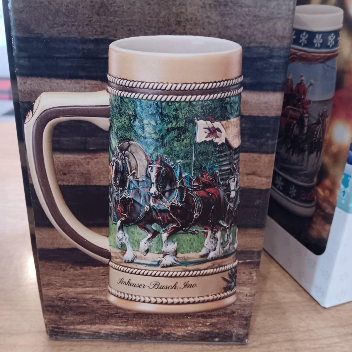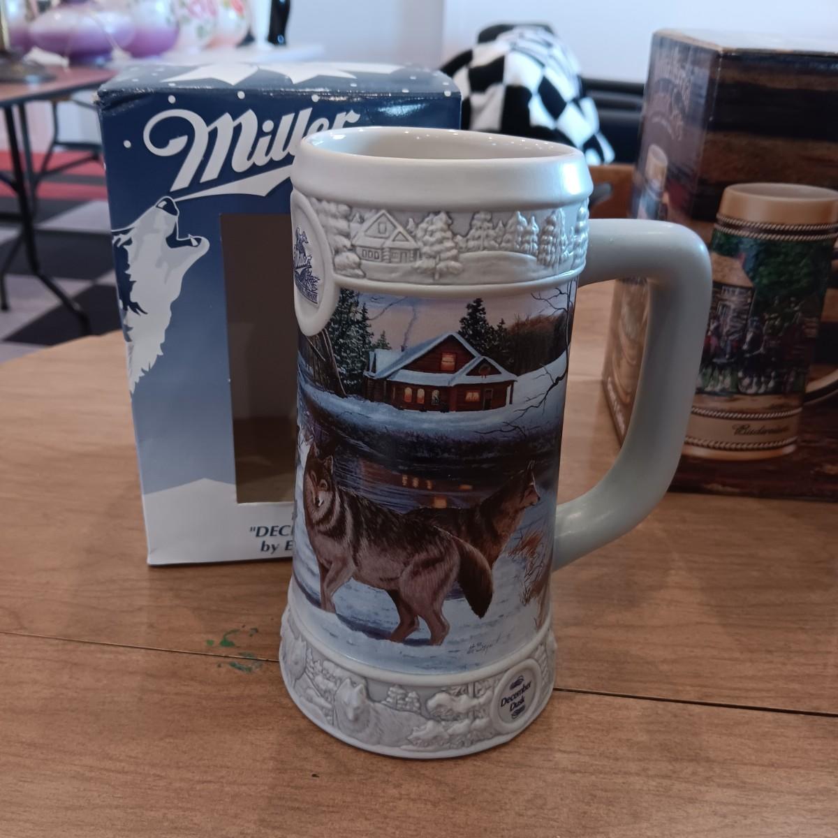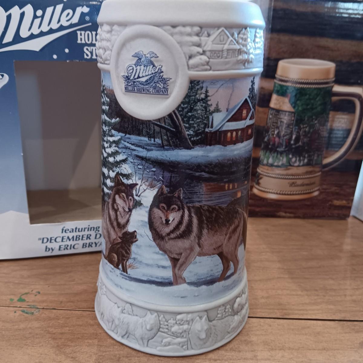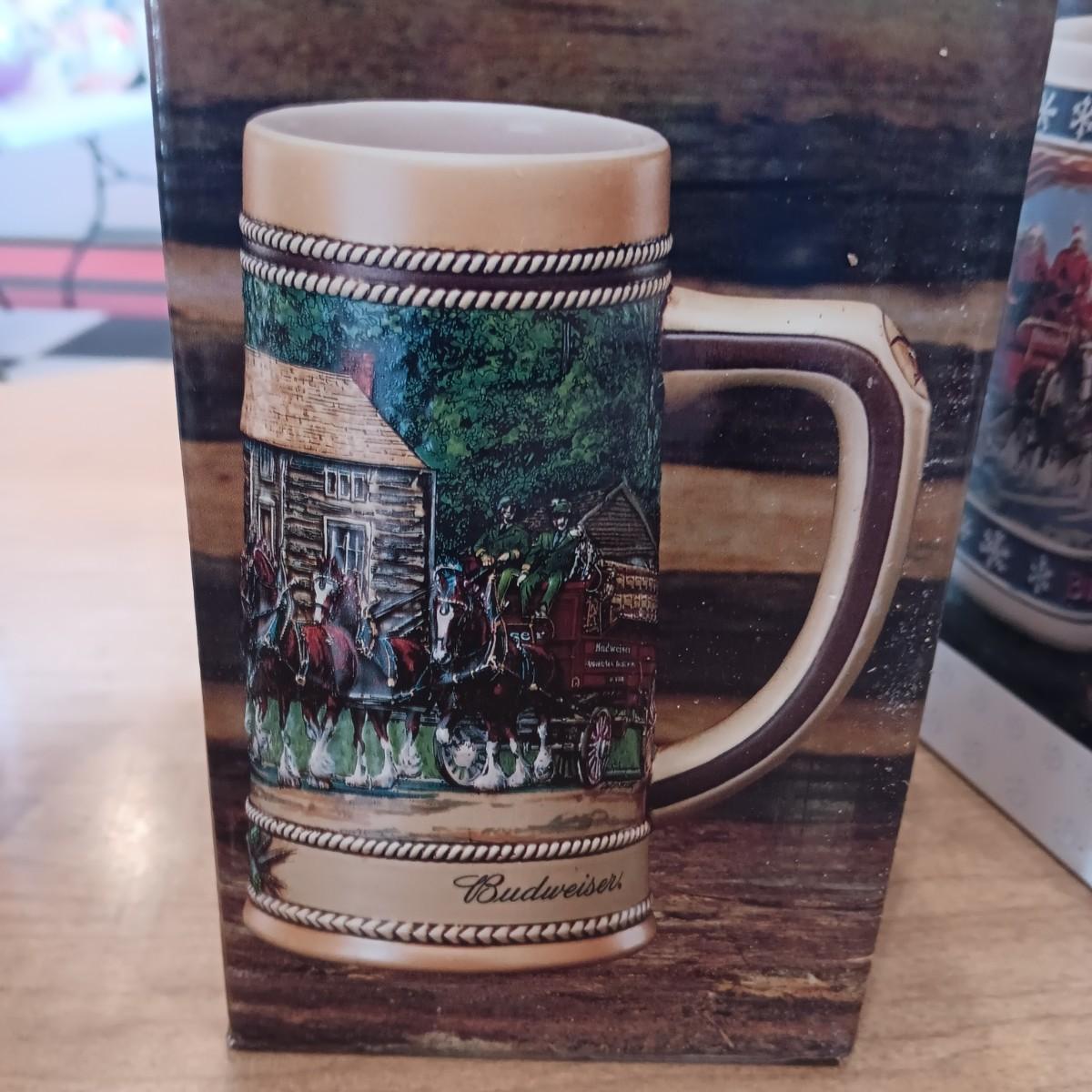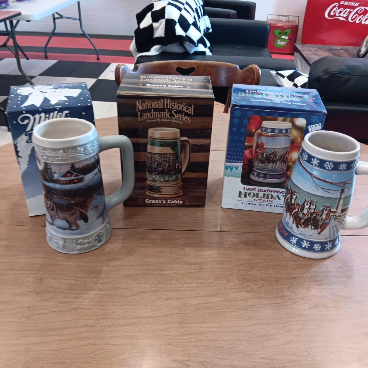 2 BUDWEISER AND 1 MILLER BEER STEINS