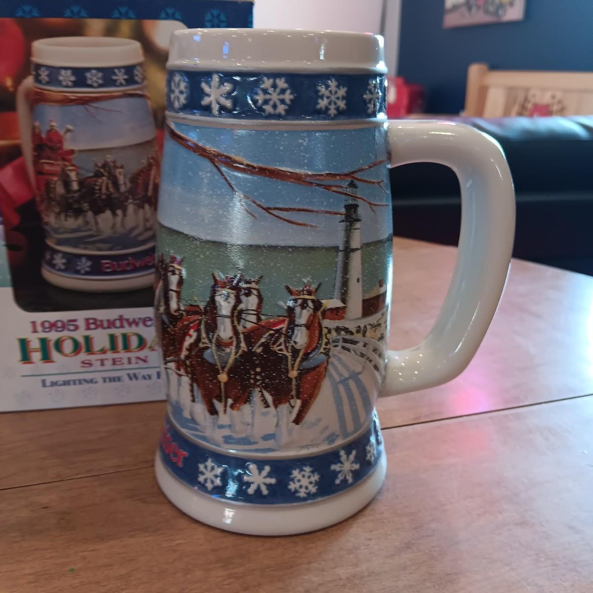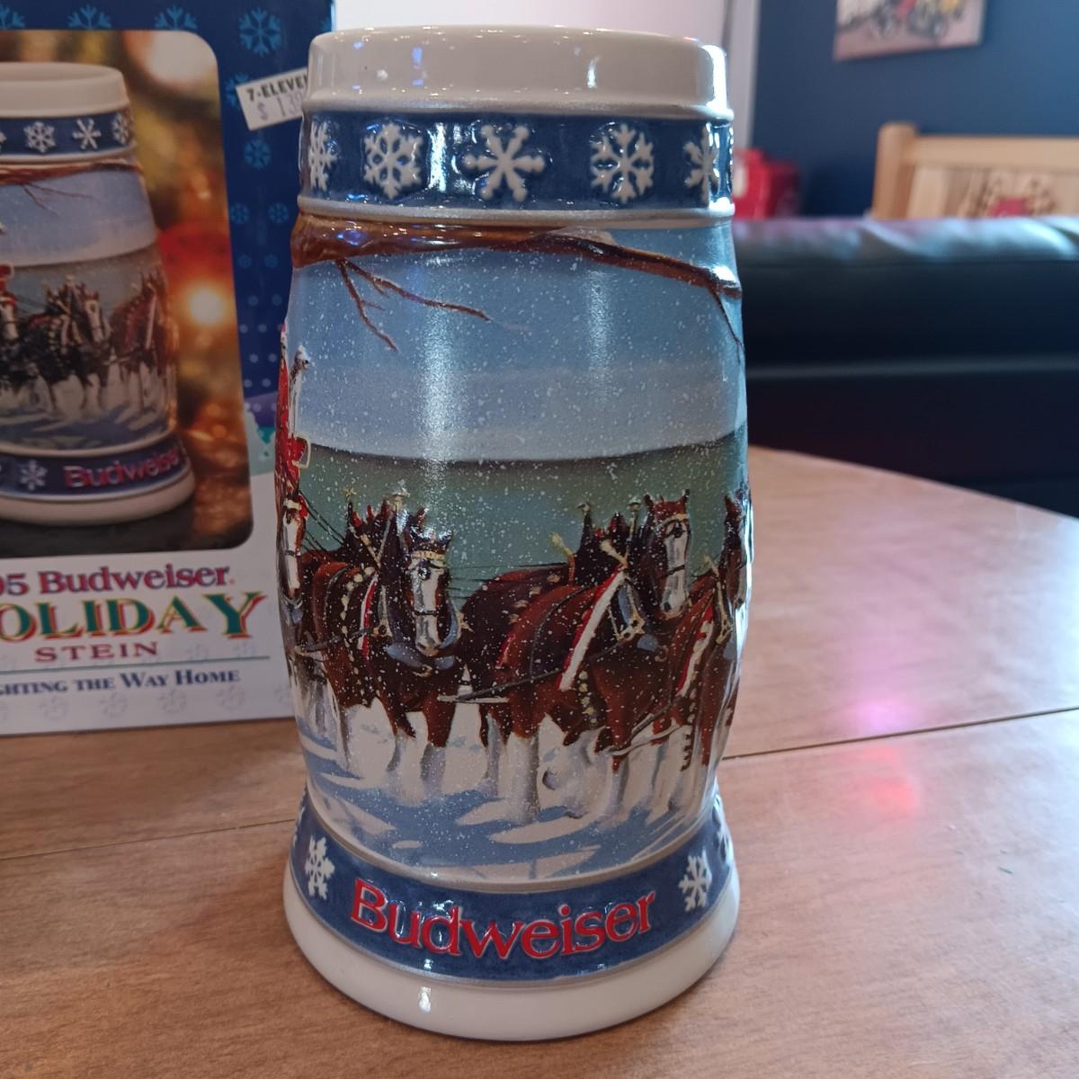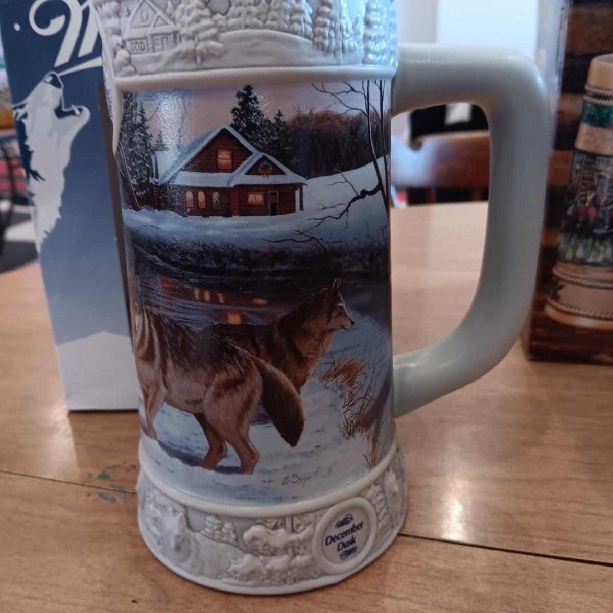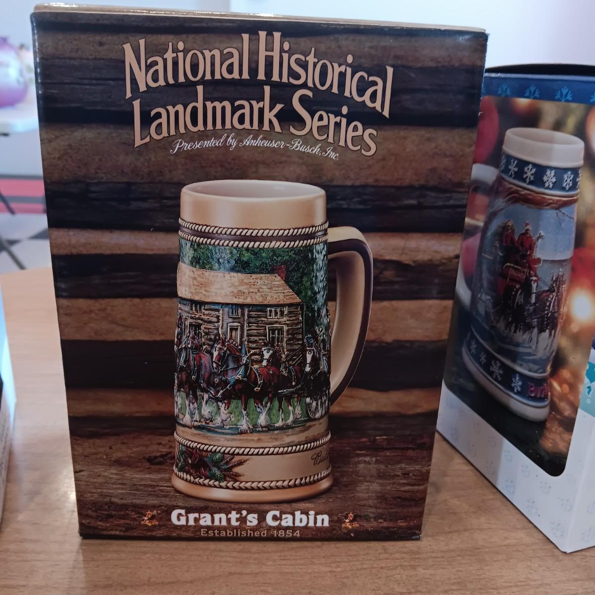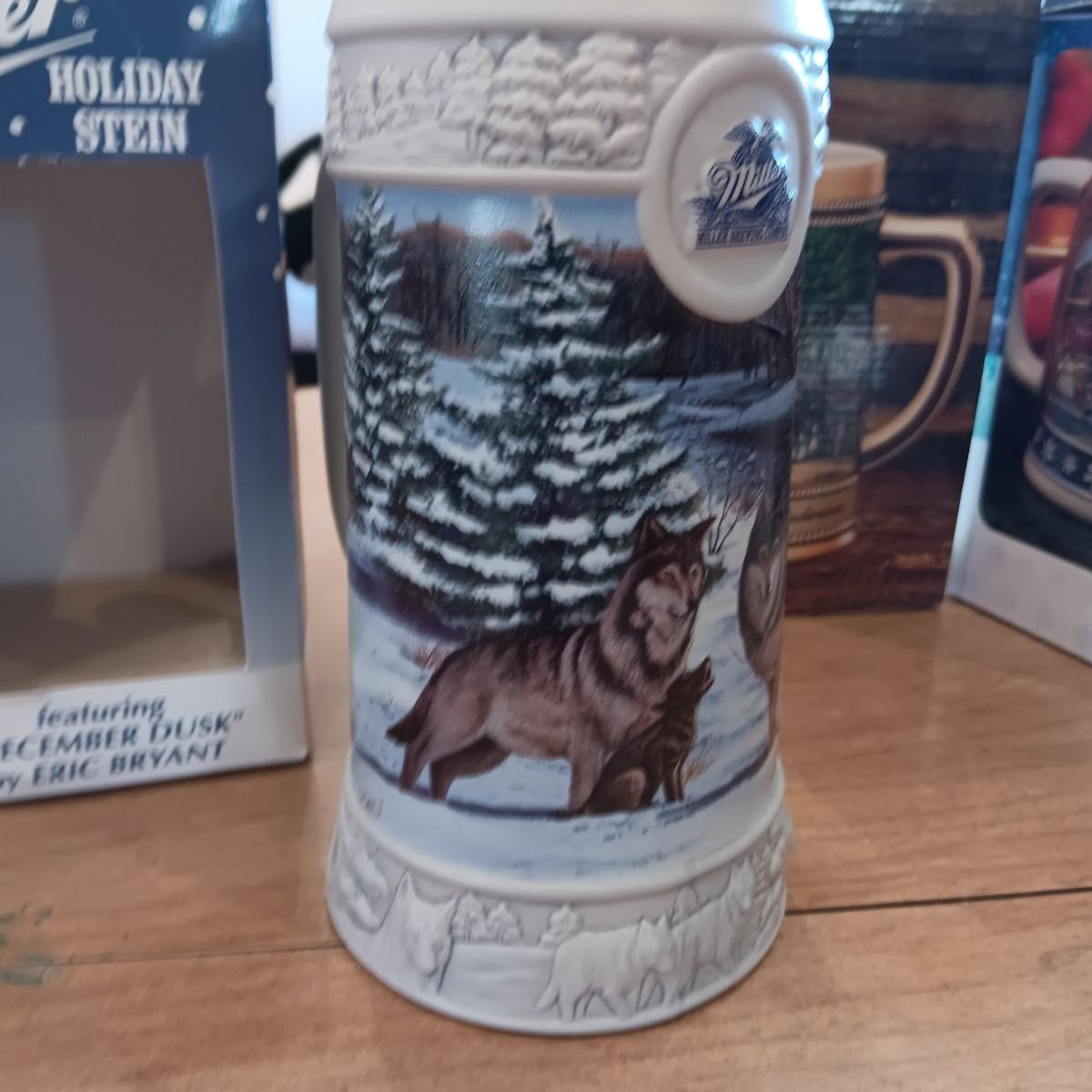 2 BUDWEISER AND 1 MILLER BEER STEINS