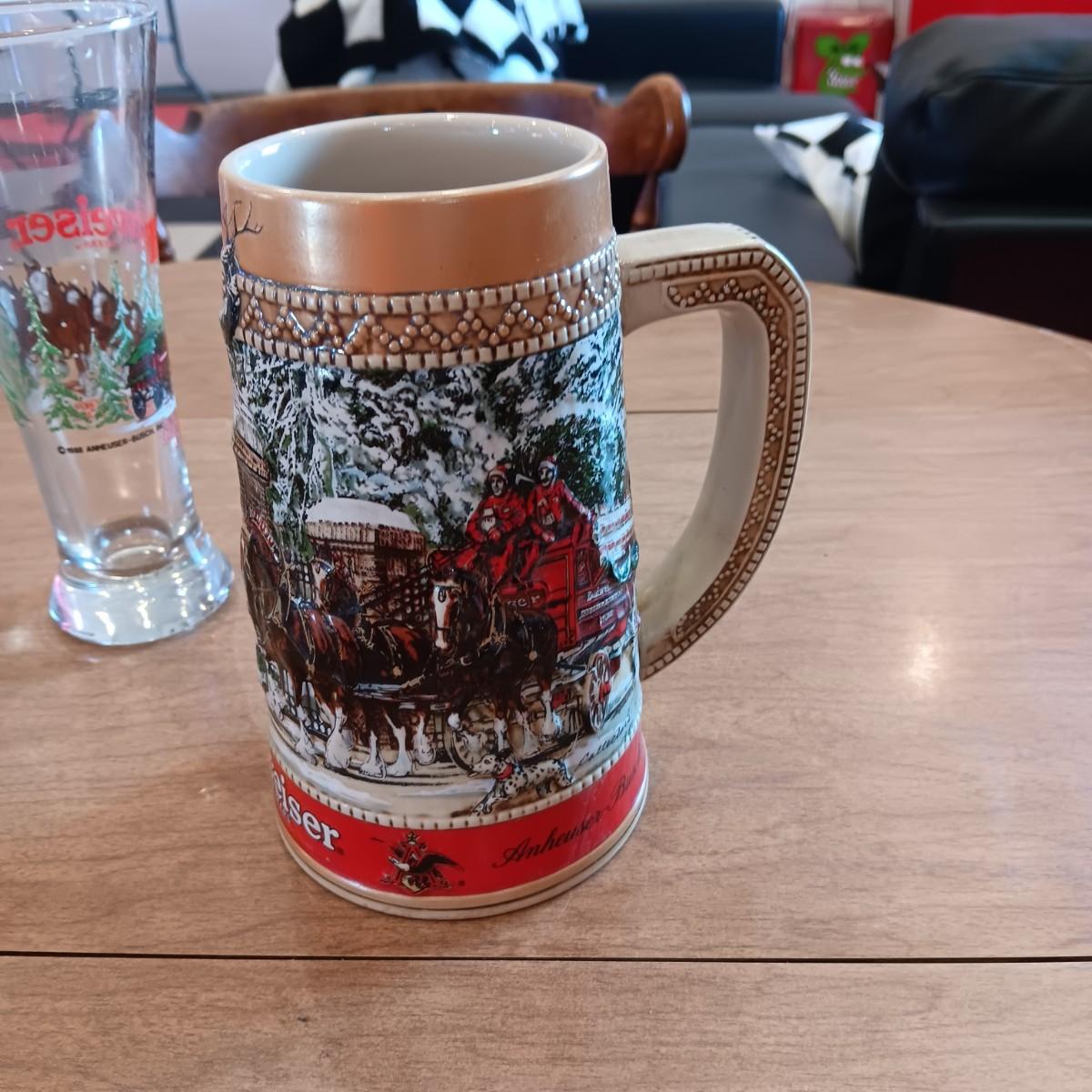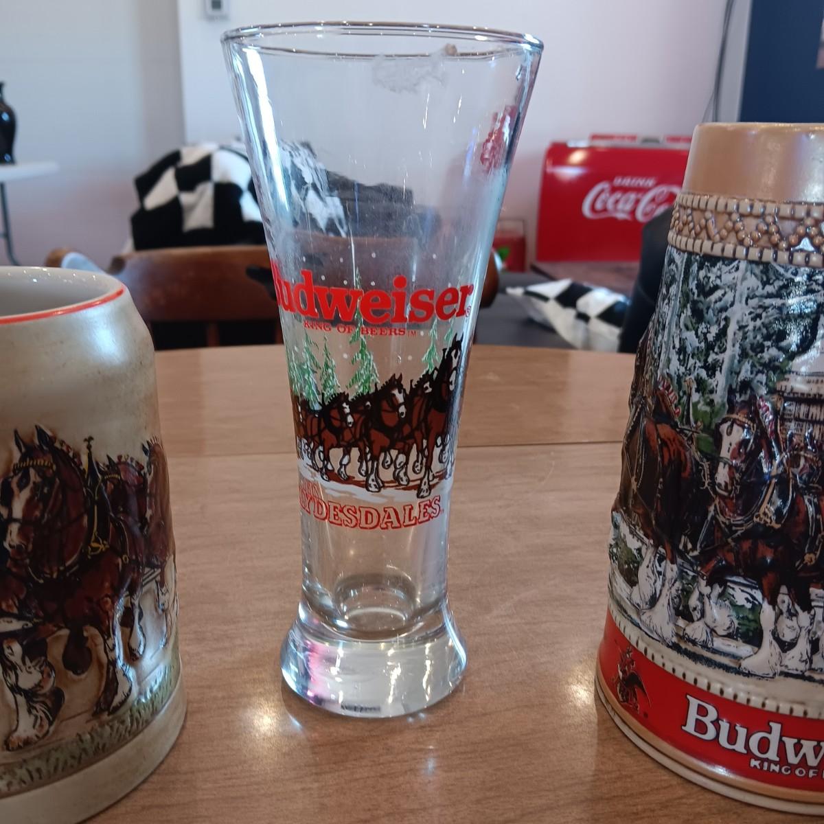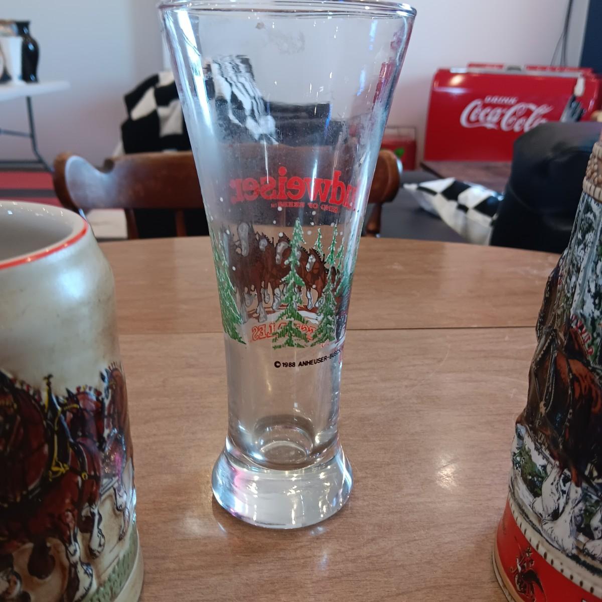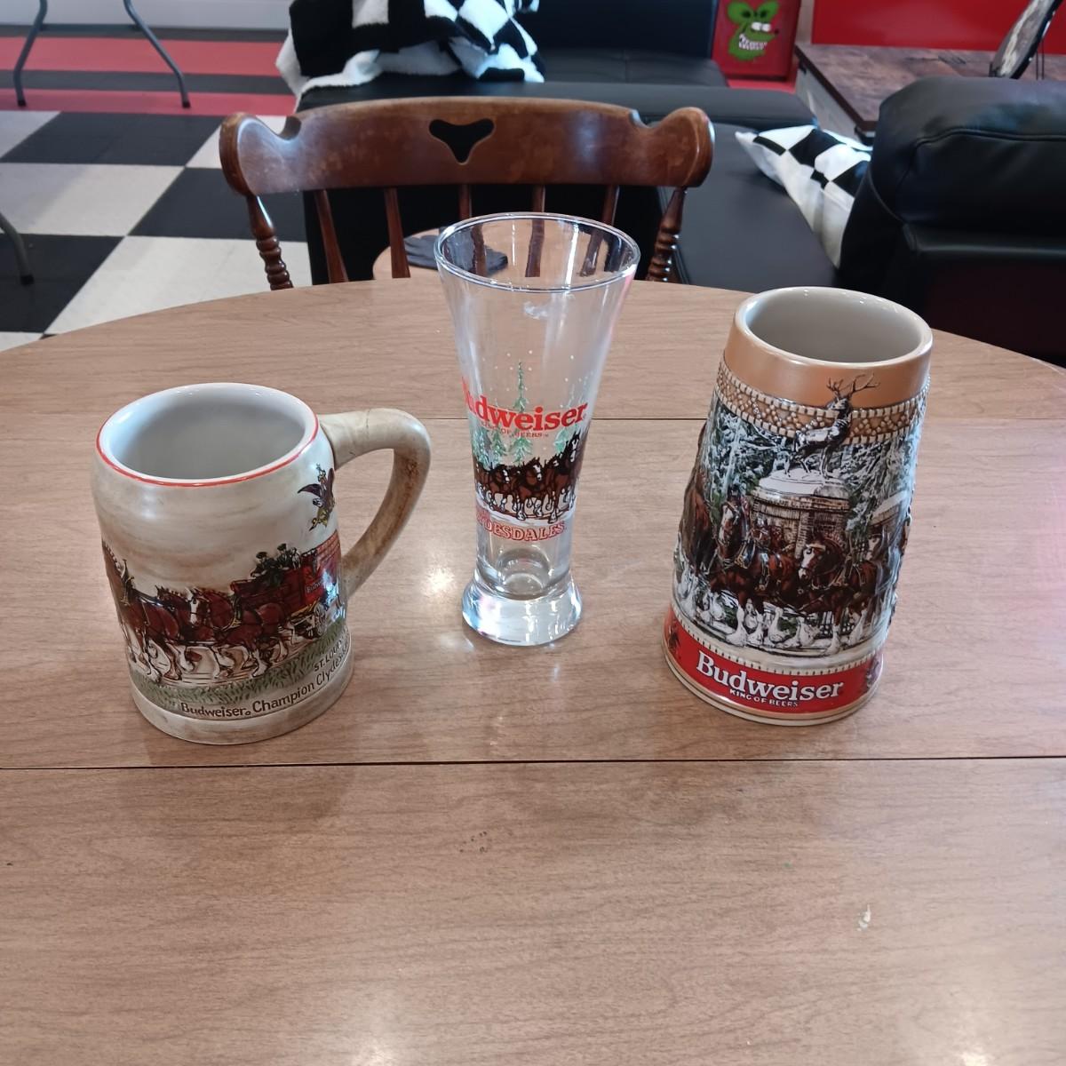 2 BUDWEISER BEER STEINS AND A 1988 BUDWEISER GLASS