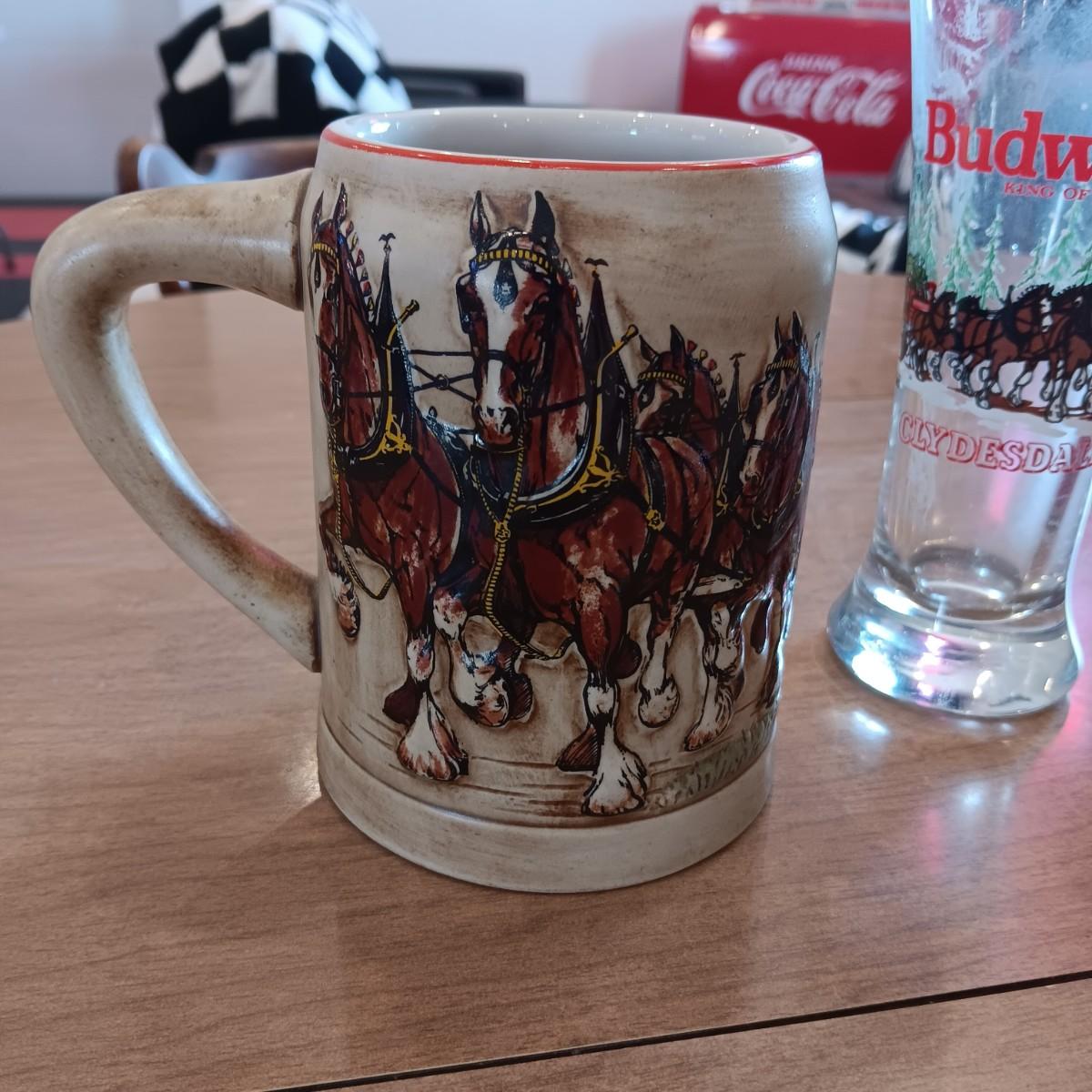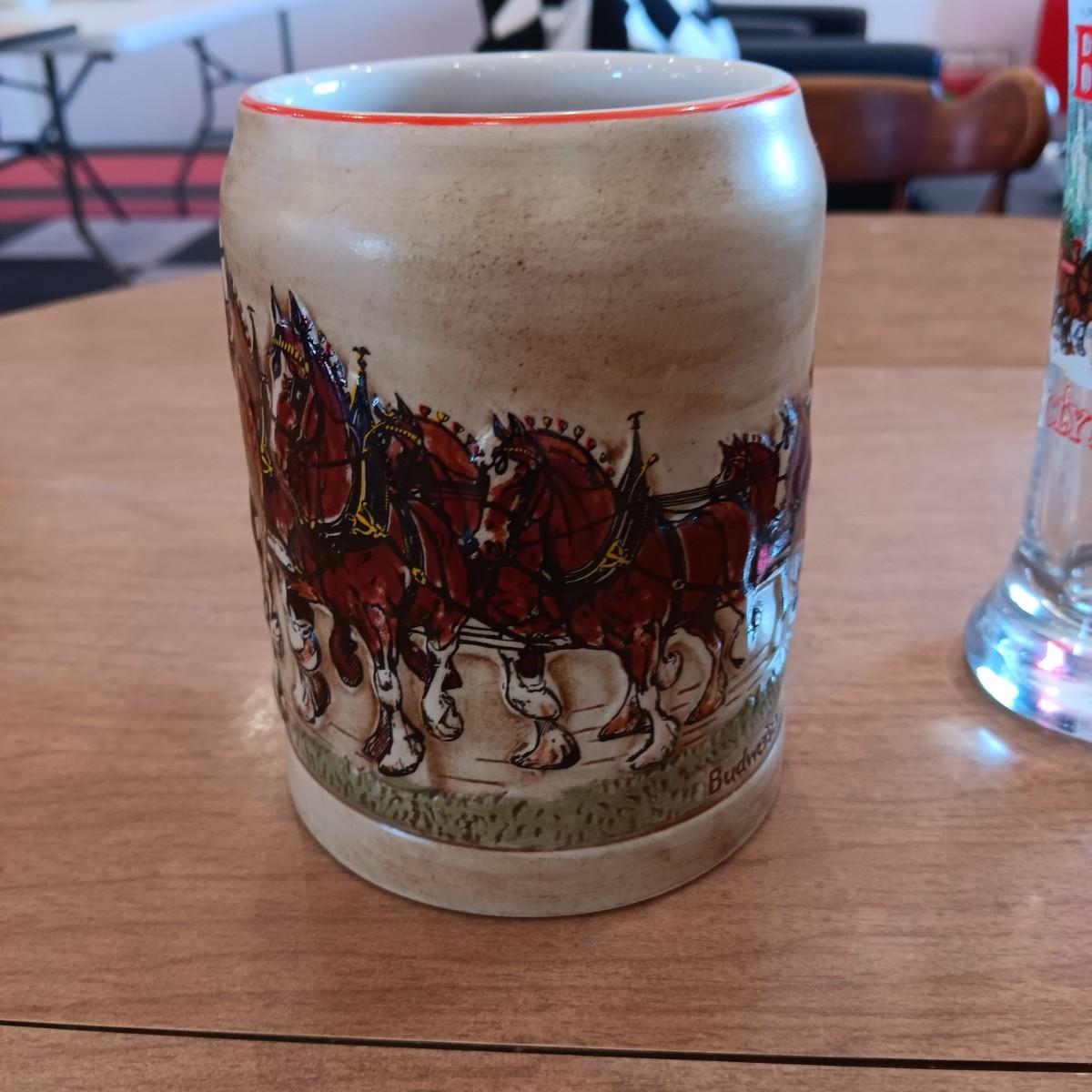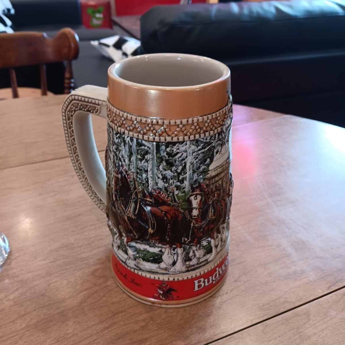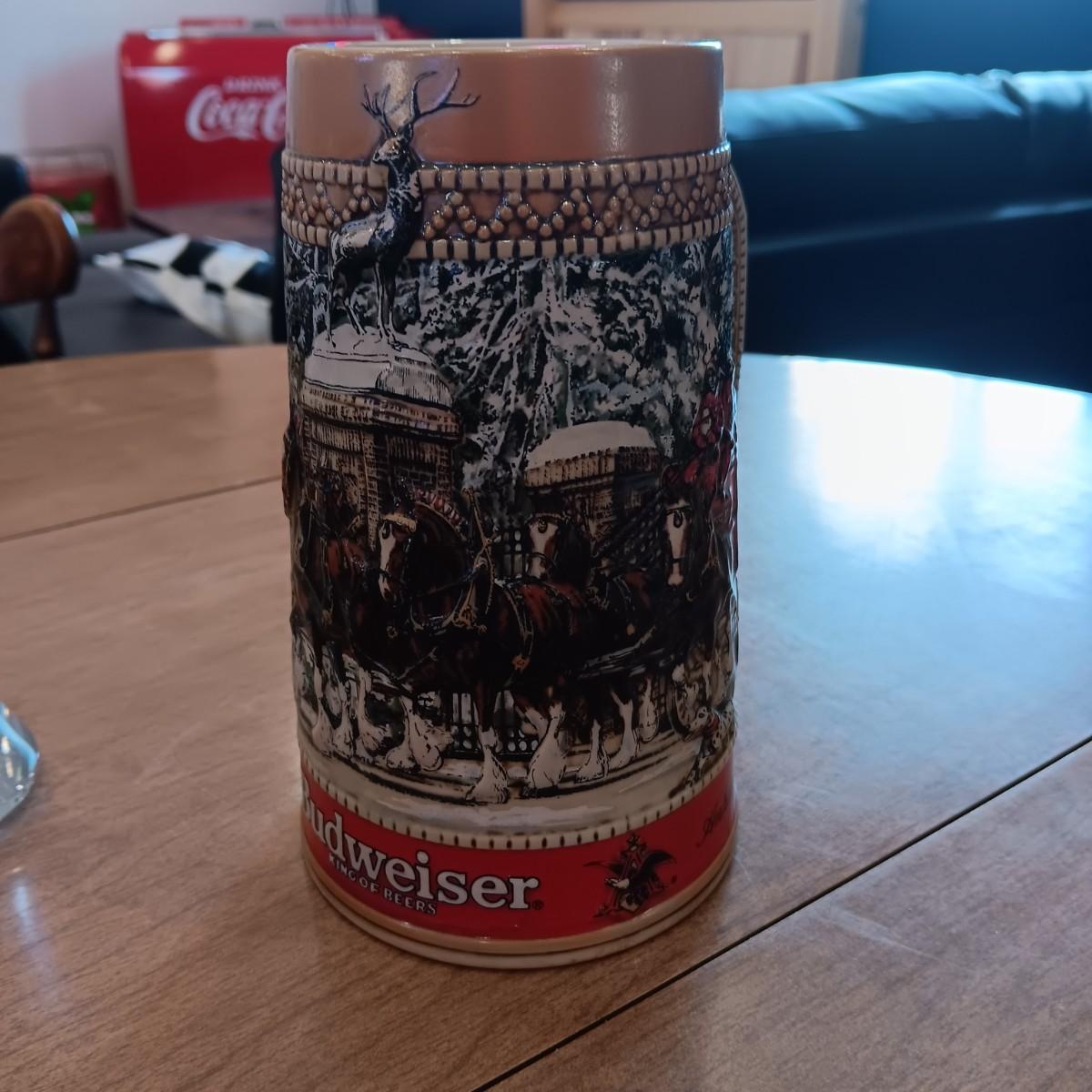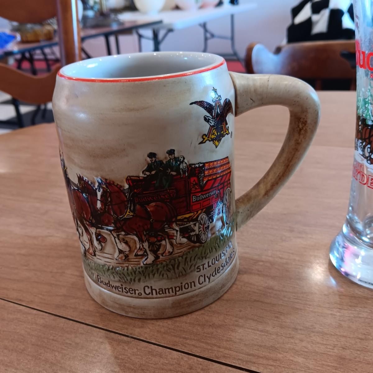 2 BUDWEISER BEER STEINS AND A 1988 BUDWEISER GLASS