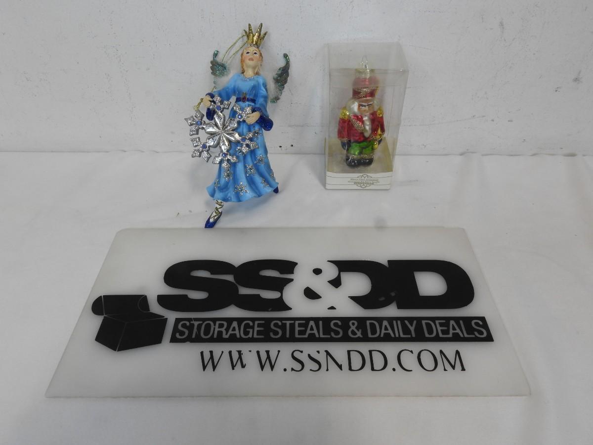 2 Christmas Ornaments: 7" Resin Snowflake Queen? 4" Blown Glass Tin Soldier