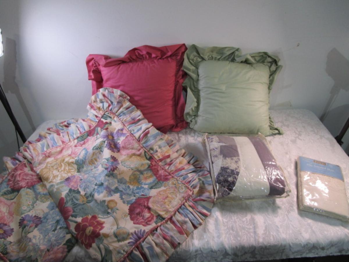 2 decorative pillows, 1 sets pillow shams, 2 individual pillow shams