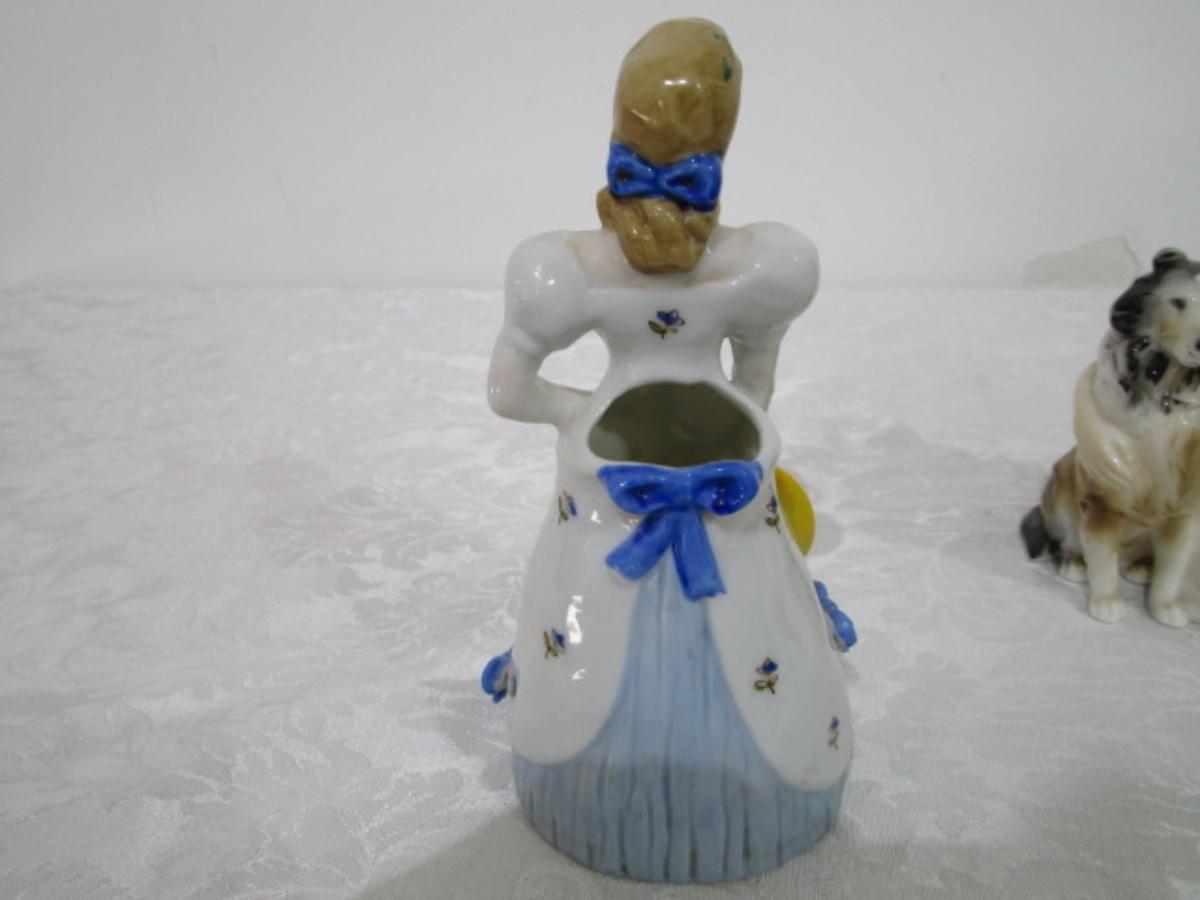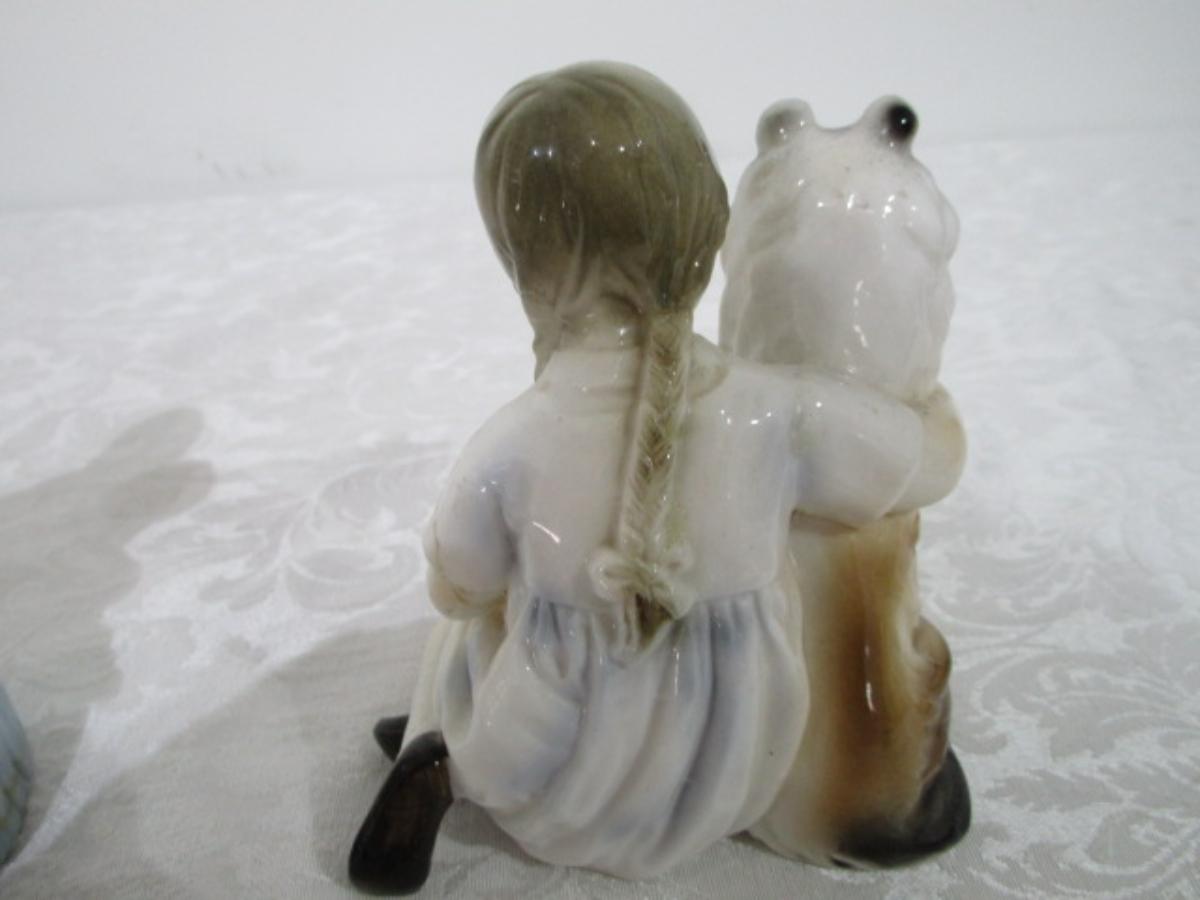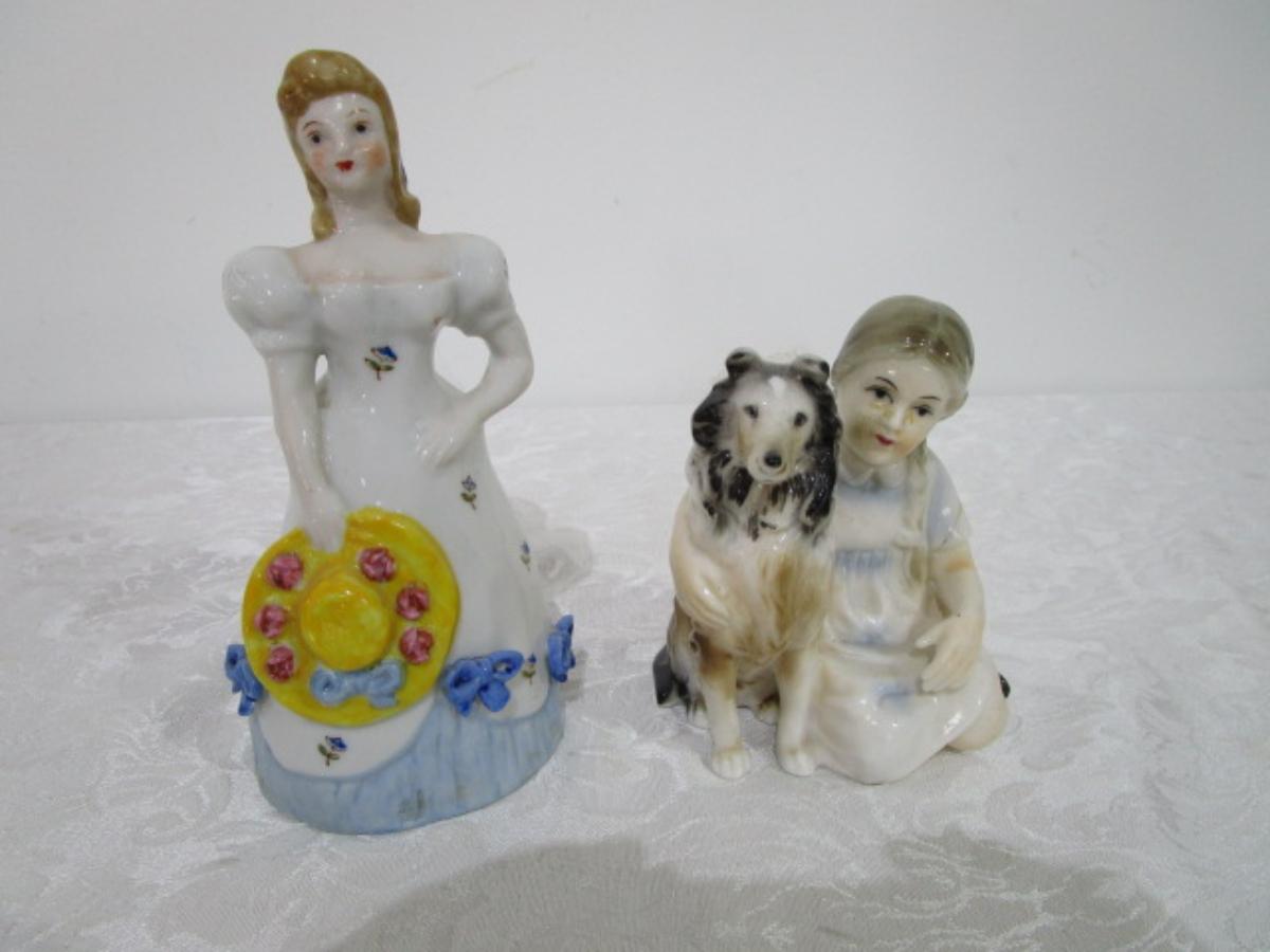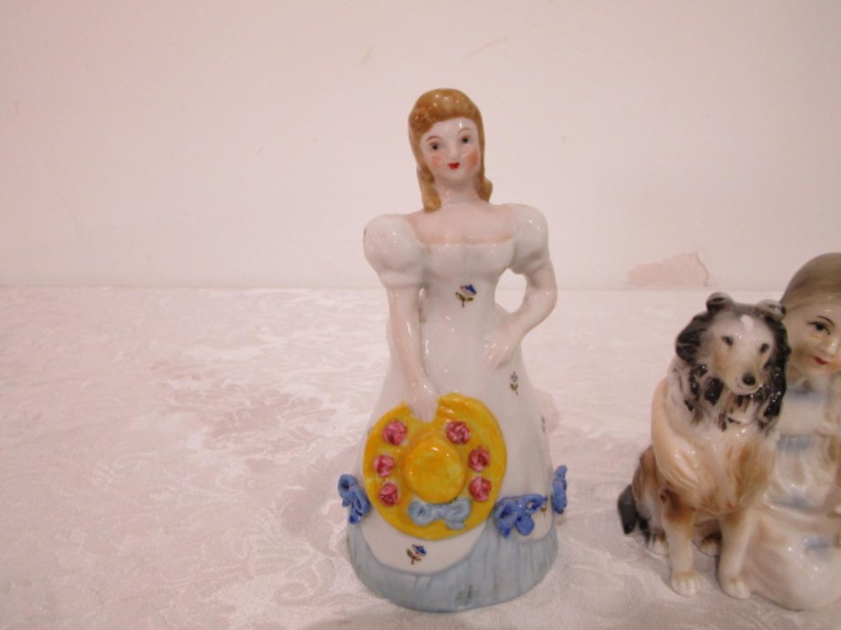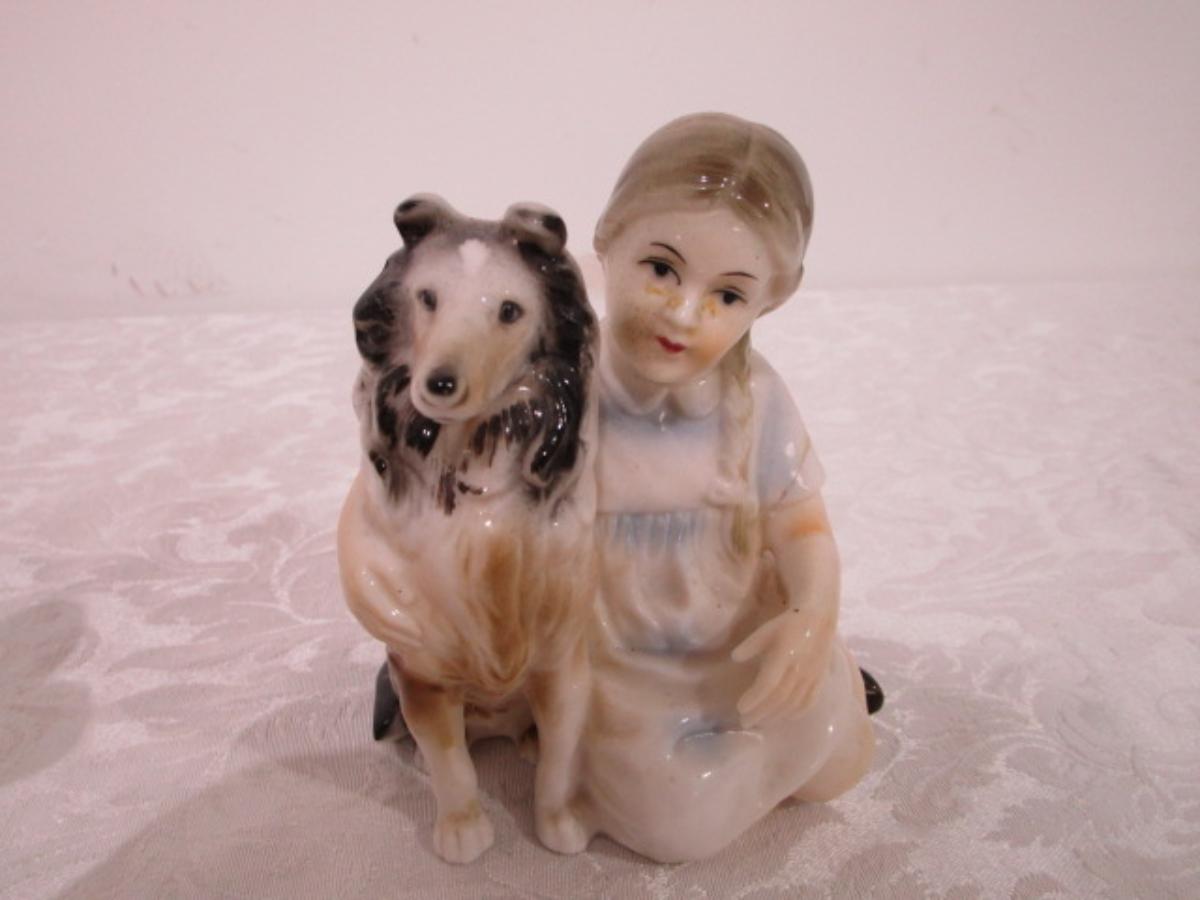 Standing girl is 7-3/4", sitting girl with dog is 5-1/4"