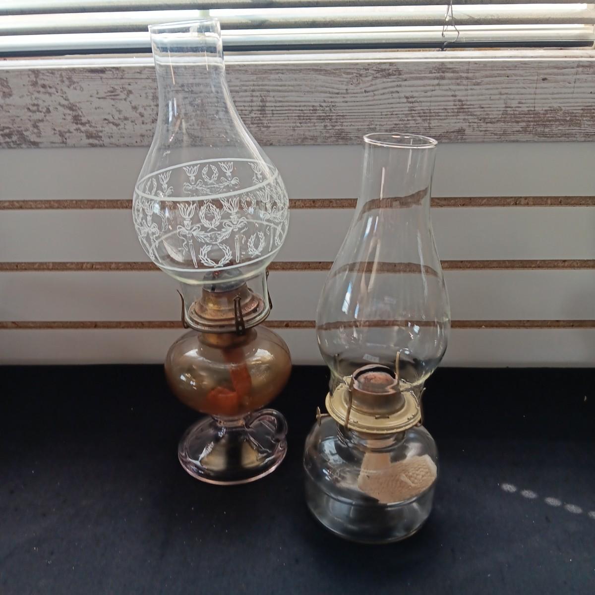QUEEN - ANNE AND CLEAR GLASS OIL LAMPS