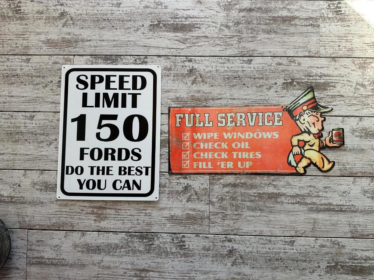 Sign on left measures 16” x 12”