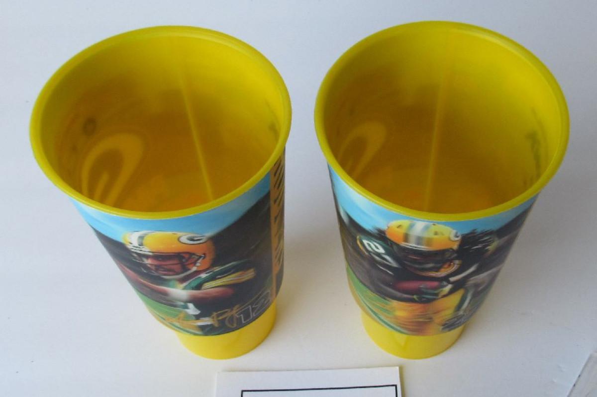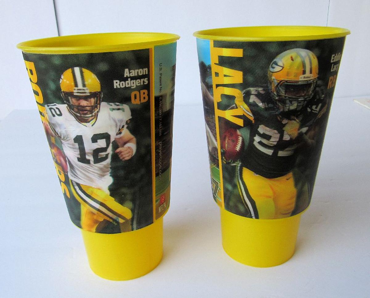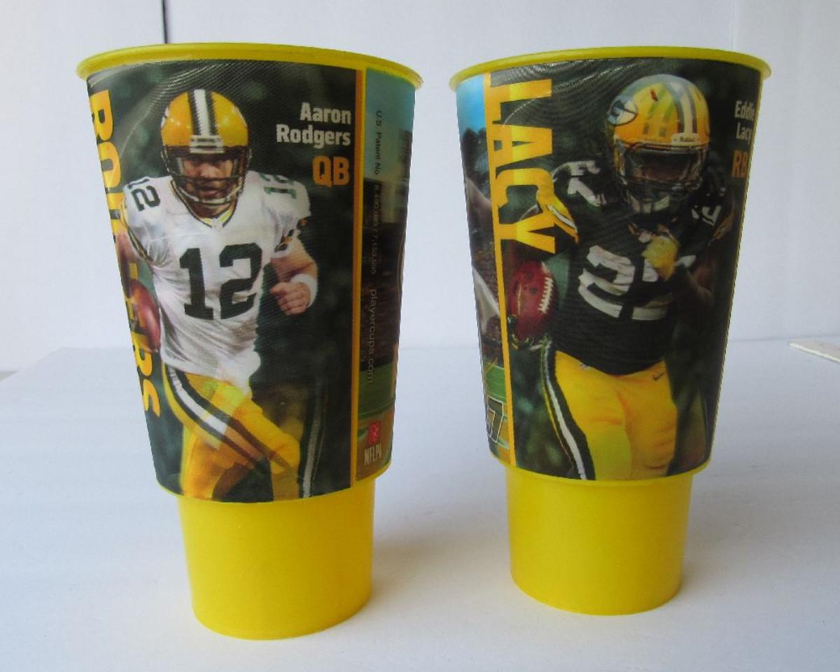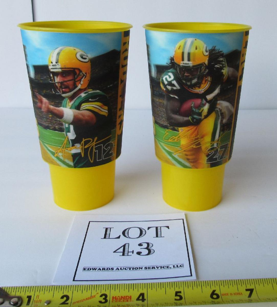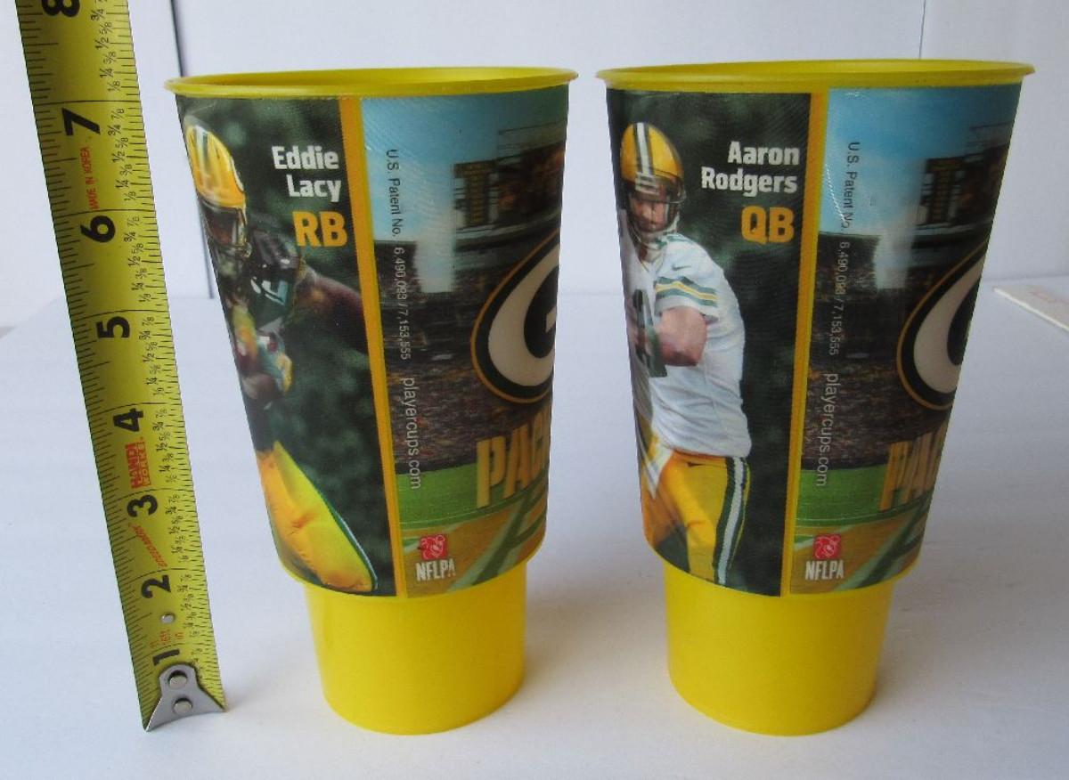 2 Older Tall Green Bay Packers Tumblers, Aaron Rogers, Eddie Lacy, Dynamic Drinkware