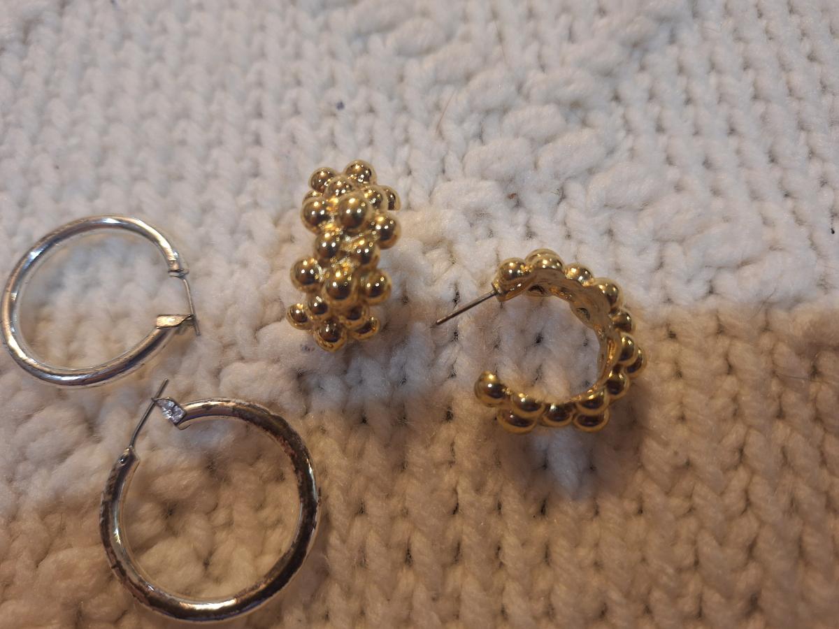 2 pair hoop earrings- silver and gold tone