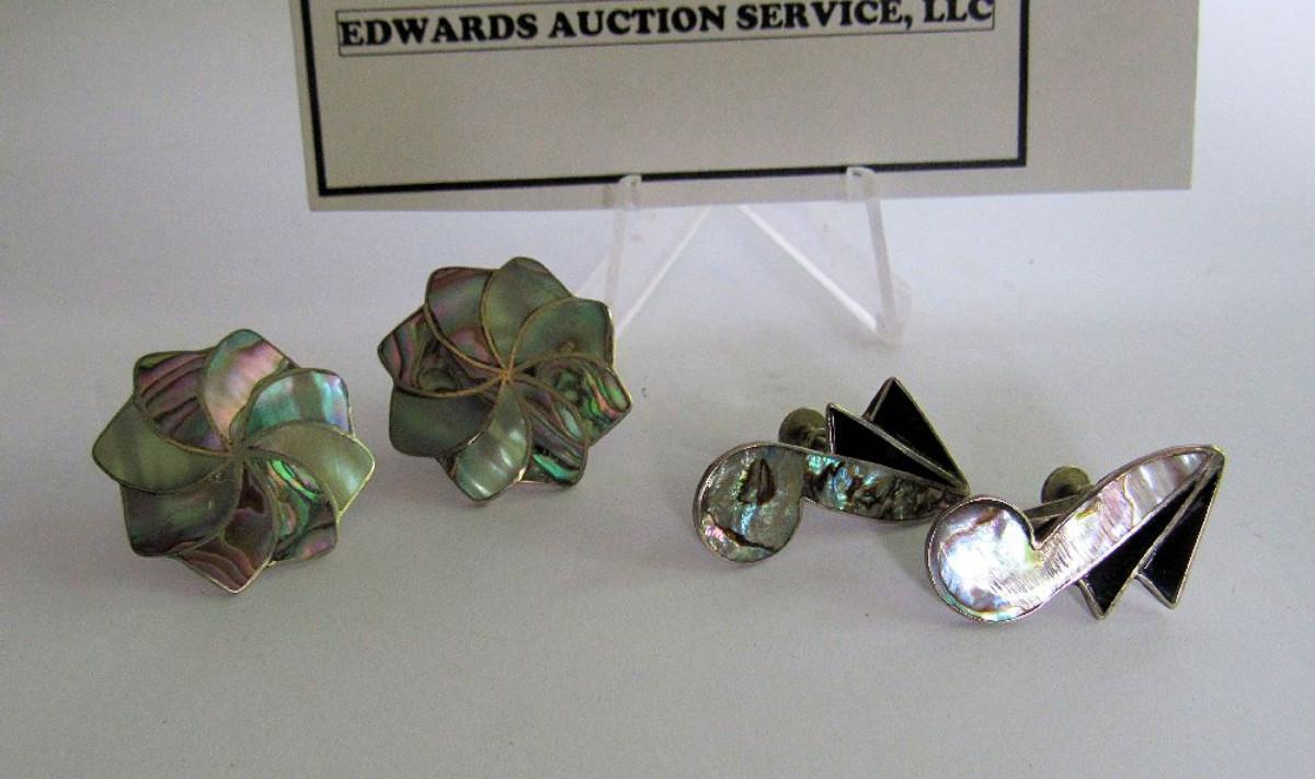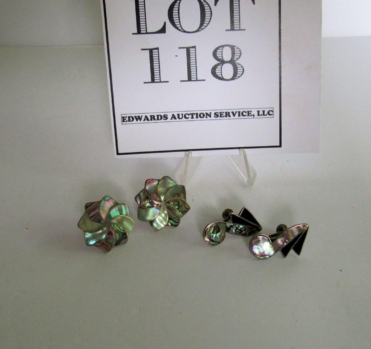 2 Pair Vintage Mexico Sterling and Abalone Shell Earrings