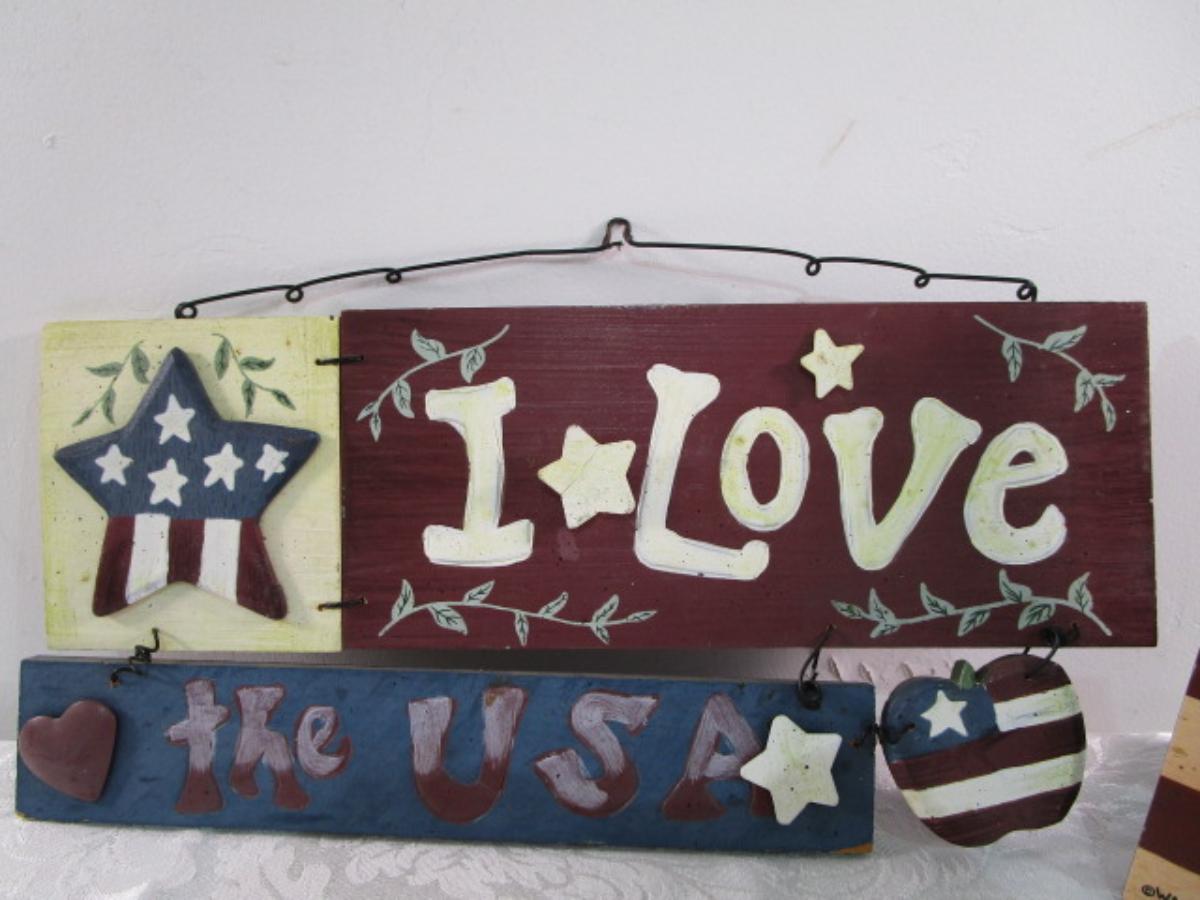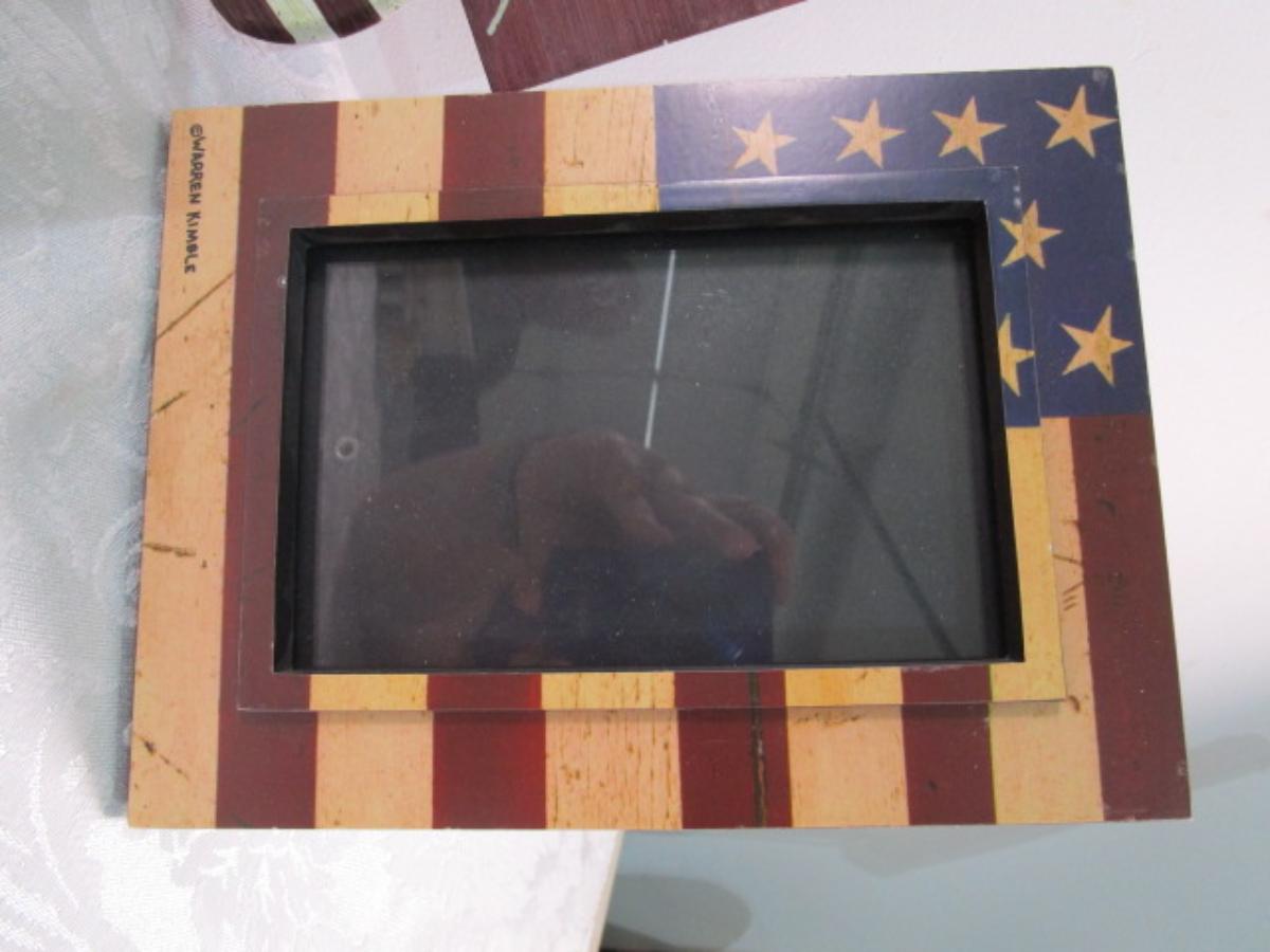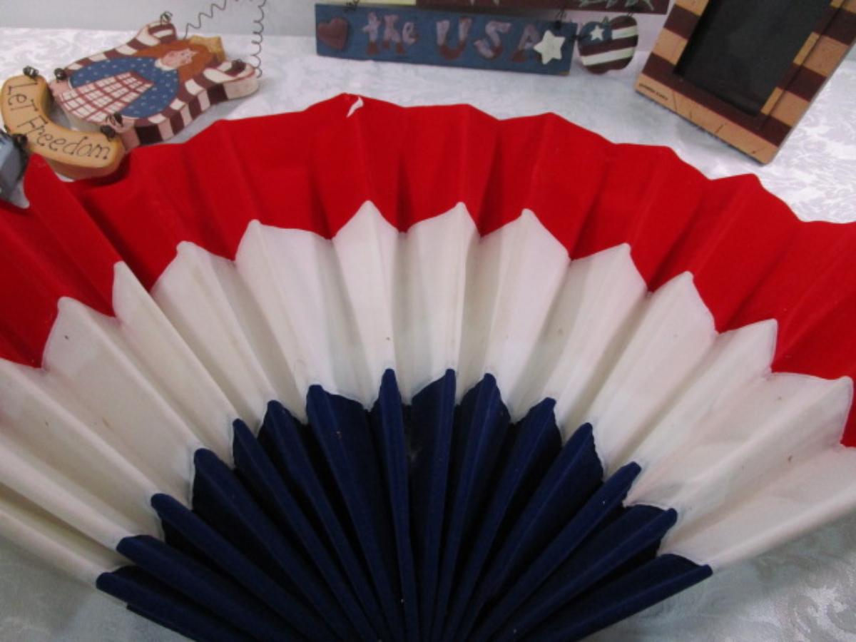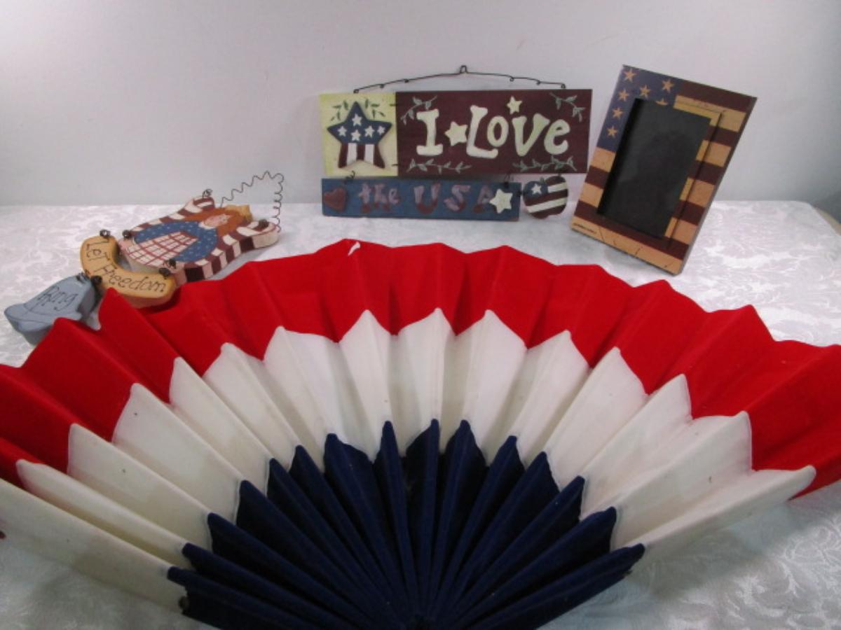 2 Patriotic wood plaques, 1 picture frame, 1 fan décor