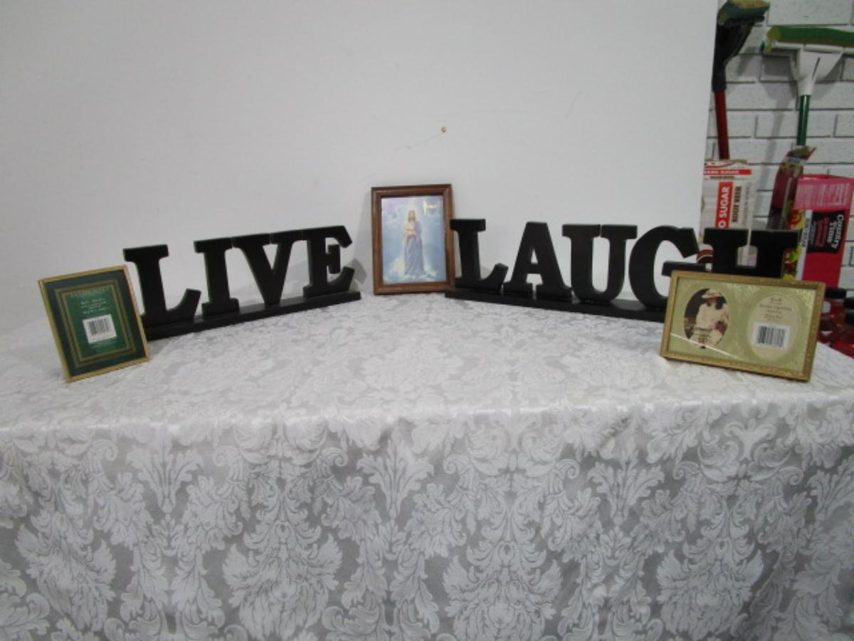 Picture of Jesus is 8" x6", "Live" is 14-7/8"" x 5-1/2"," Laugh" is 21-1/2" x 5-1/2" tallSee pictures