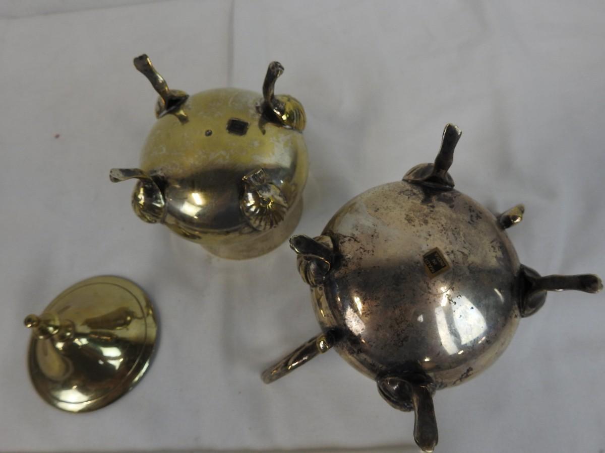 2 Small 4 Legged Brass? Metal Cauldrons - One Lid Made in India