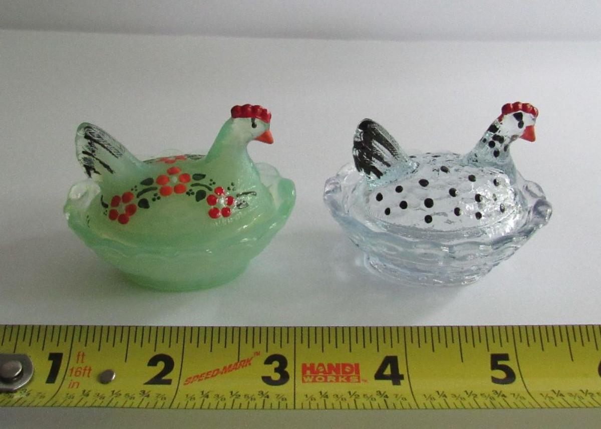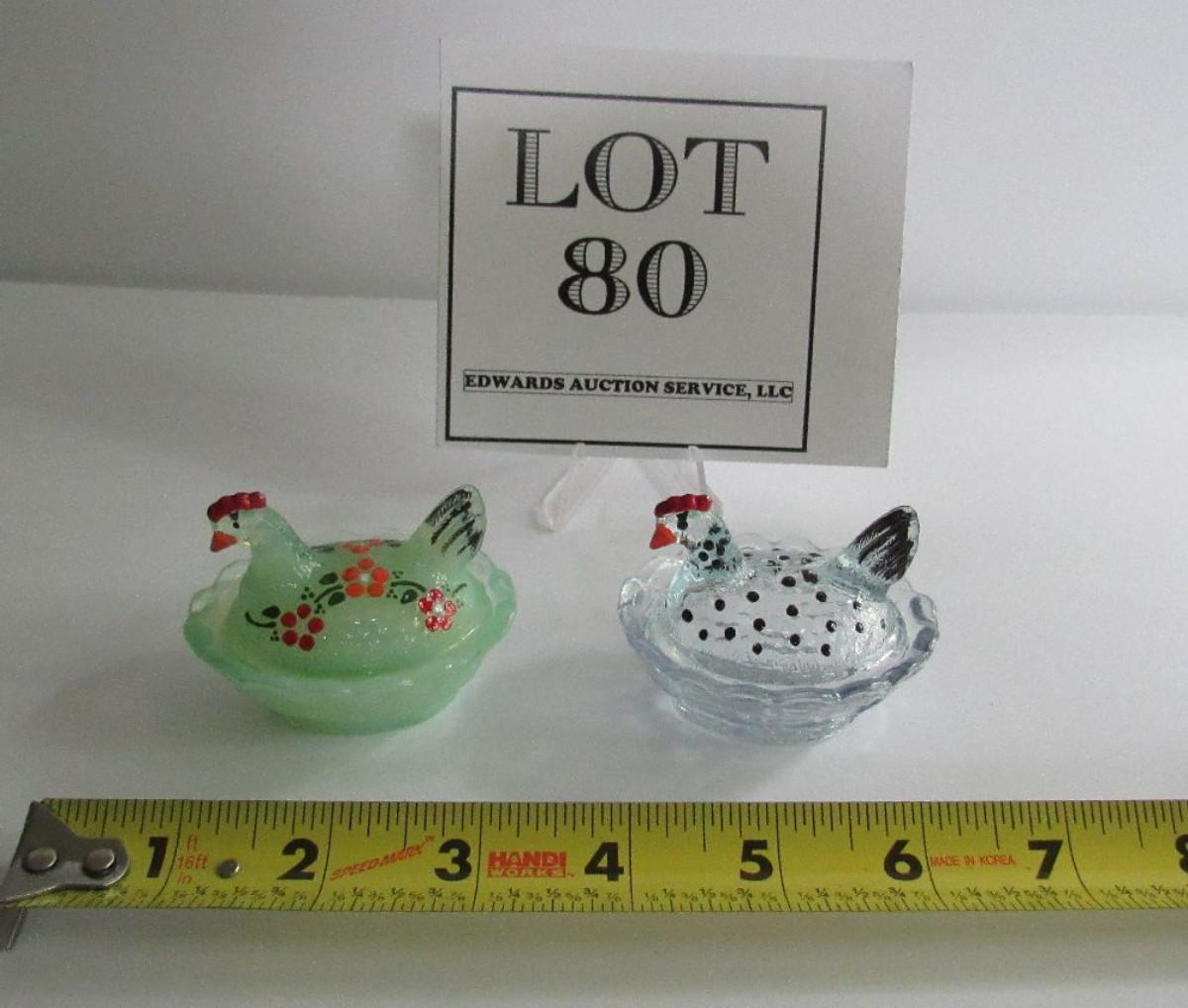 2 Vintage Boyd Glass Hand Painted Hen on Nest Covered Salts