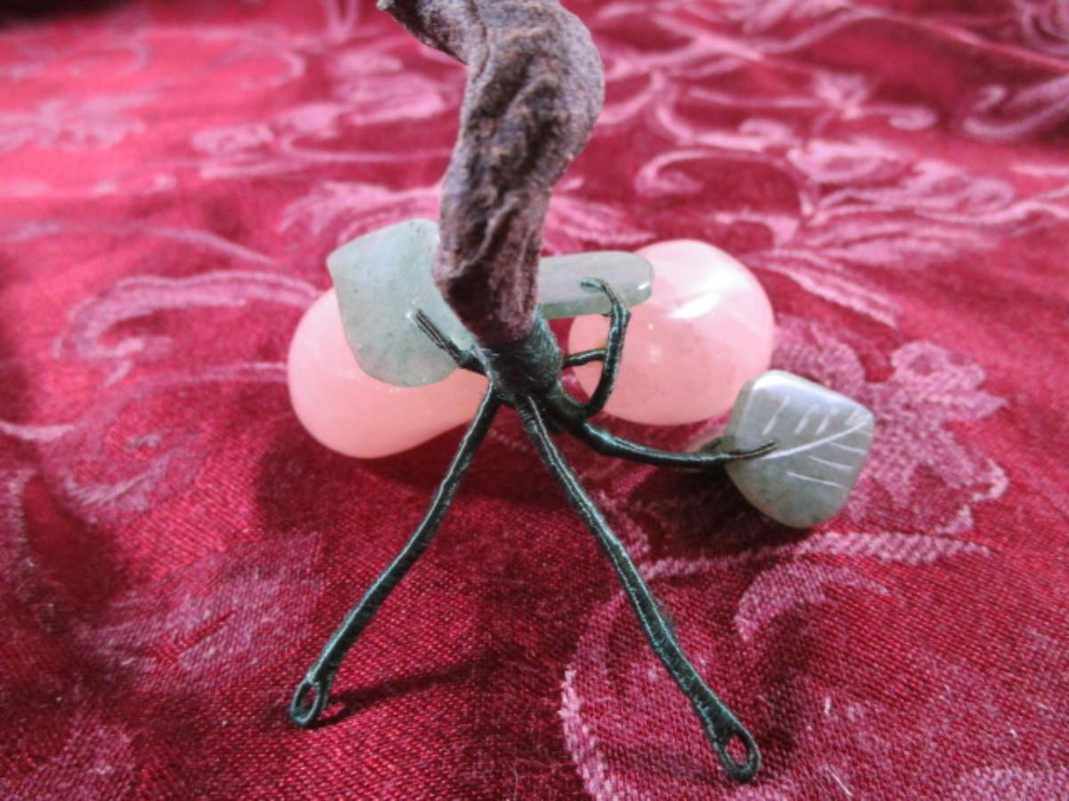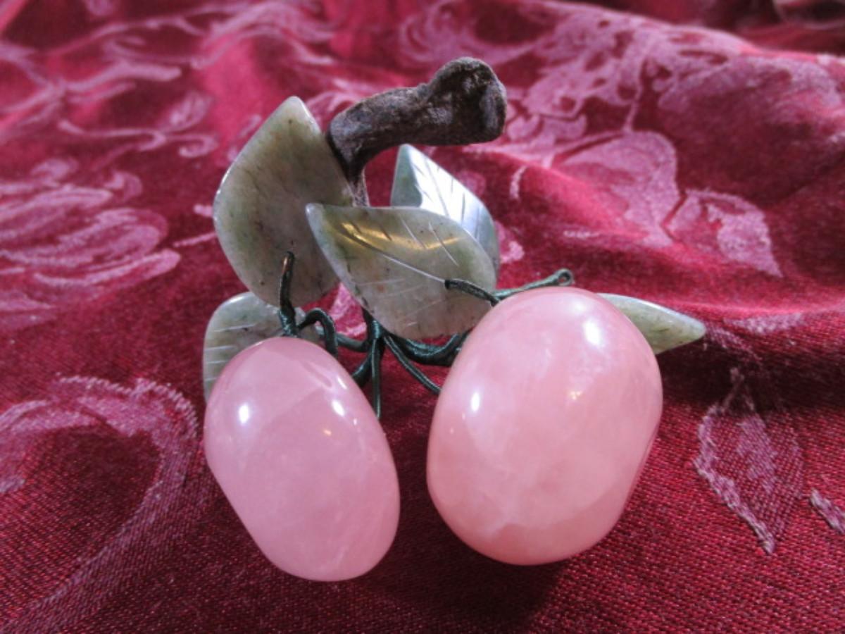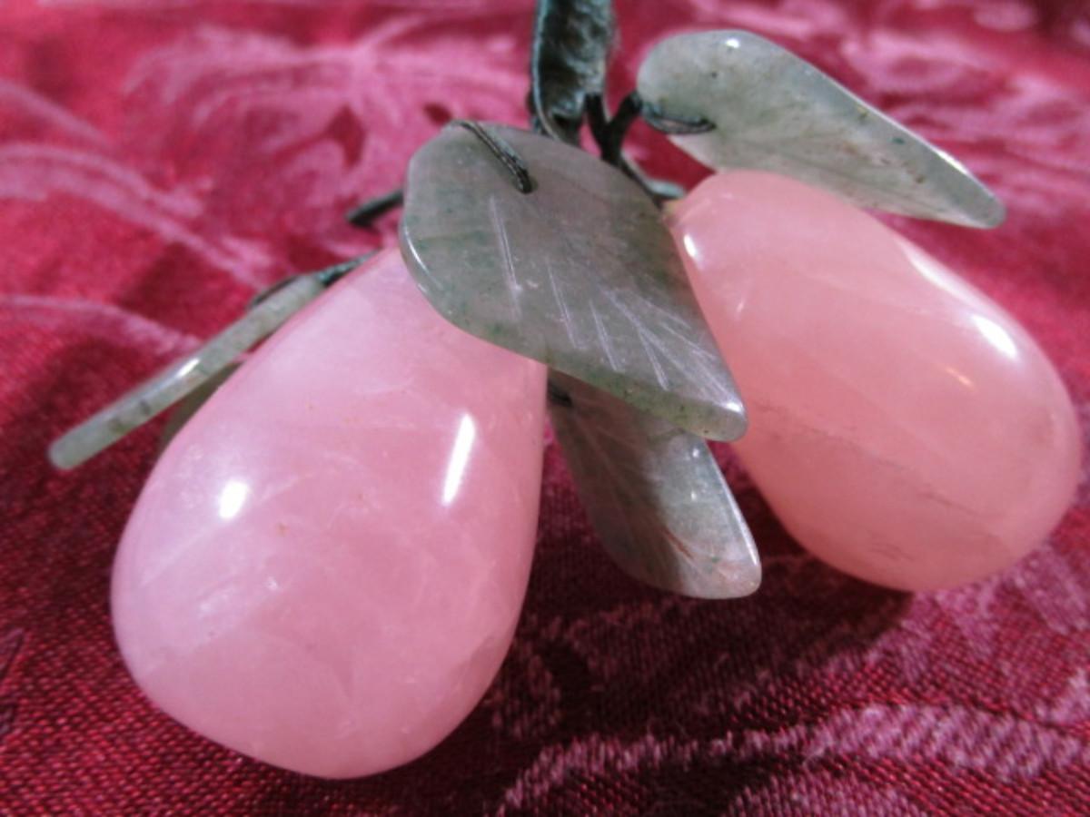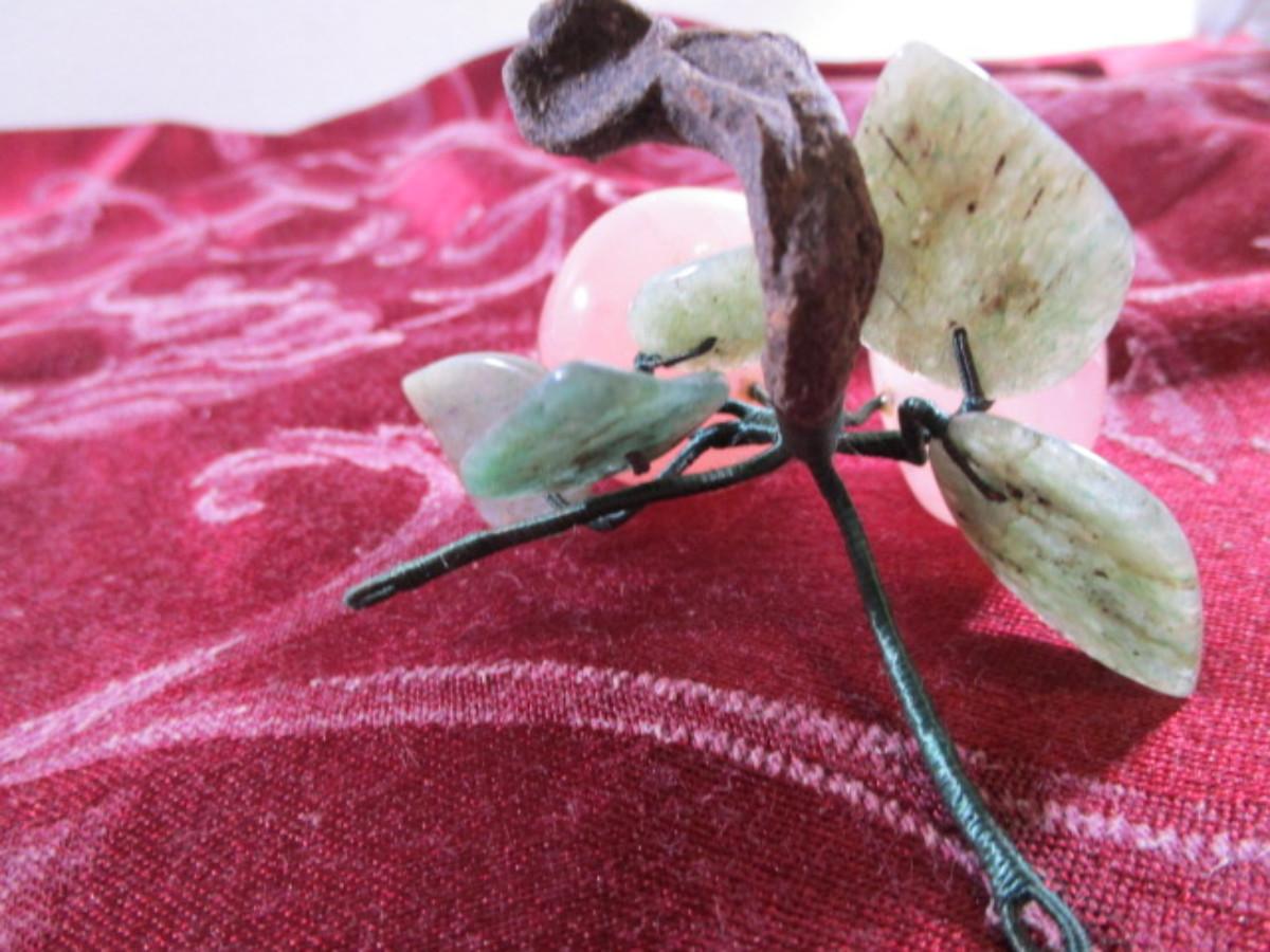 Genuine Rose Quartz with carved jade leaves