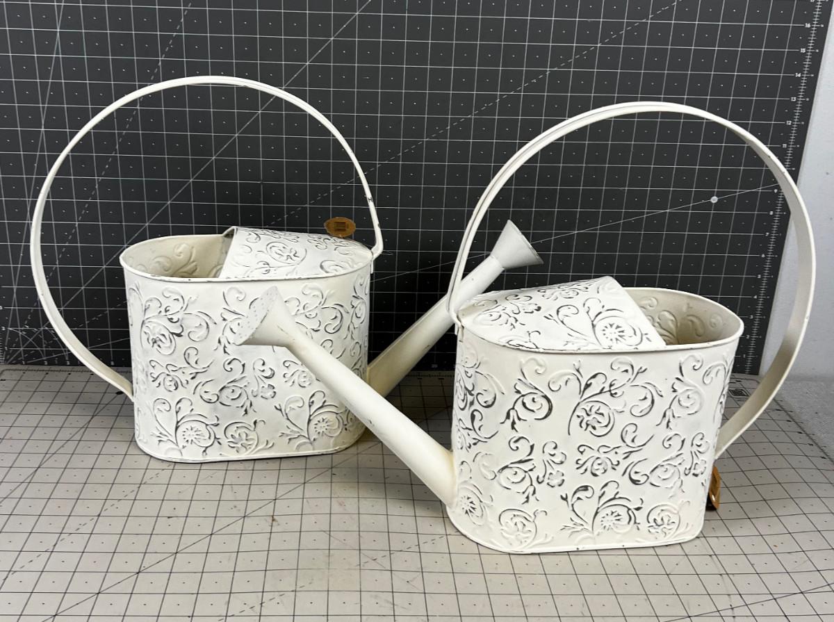 2 Watering Can NEW White with Design
