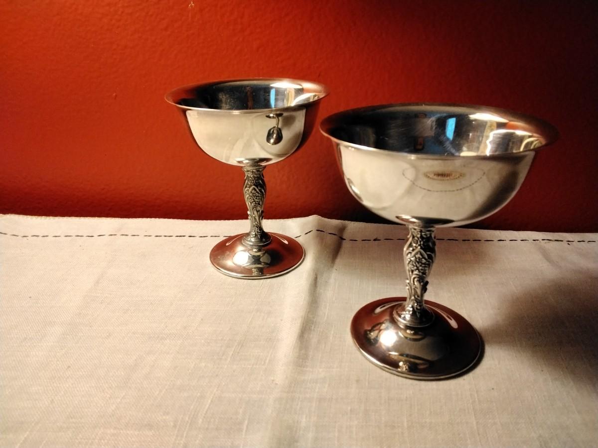 2 Wm Rogers Silver Champagne Goblets, Vintage Silver Floral Barware, New Years Eve Wedding Toasting Stemware