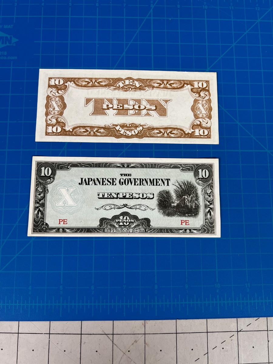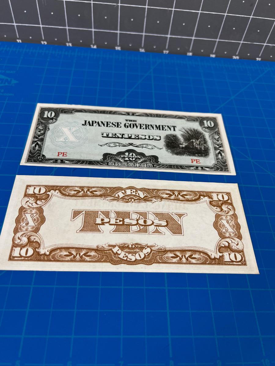 2 WWII 10 Peso NOTES - Basically Uncirculated
