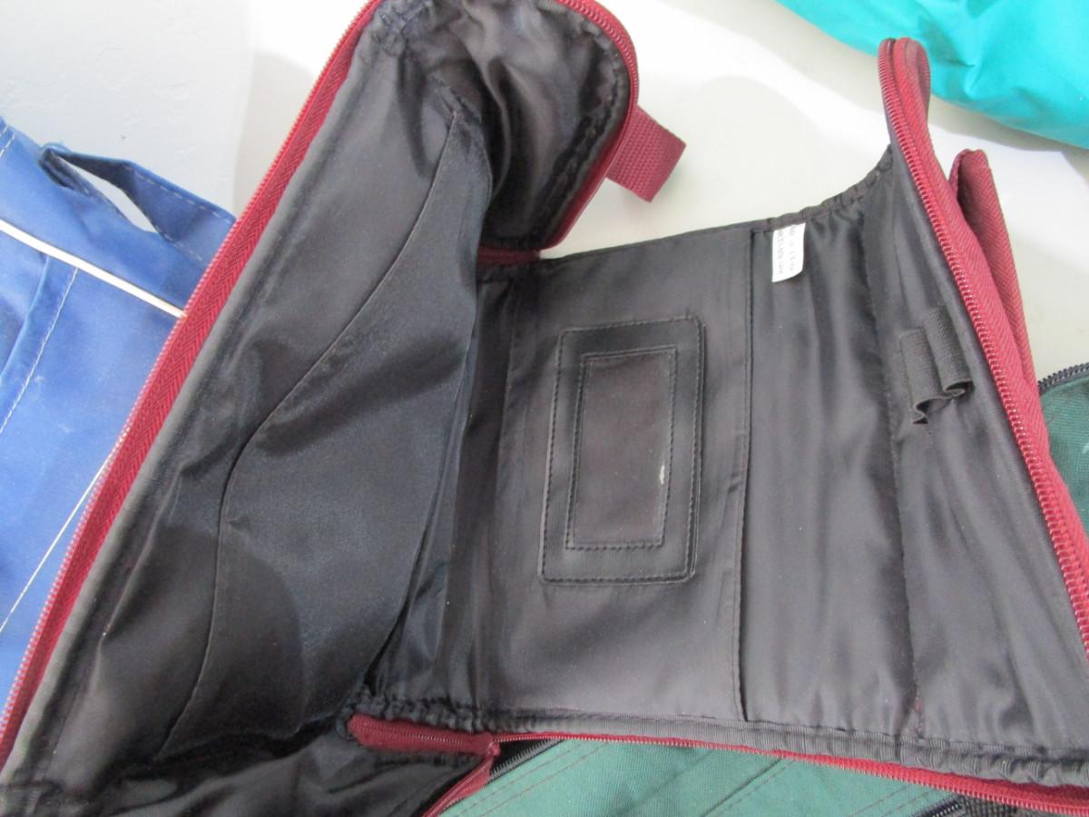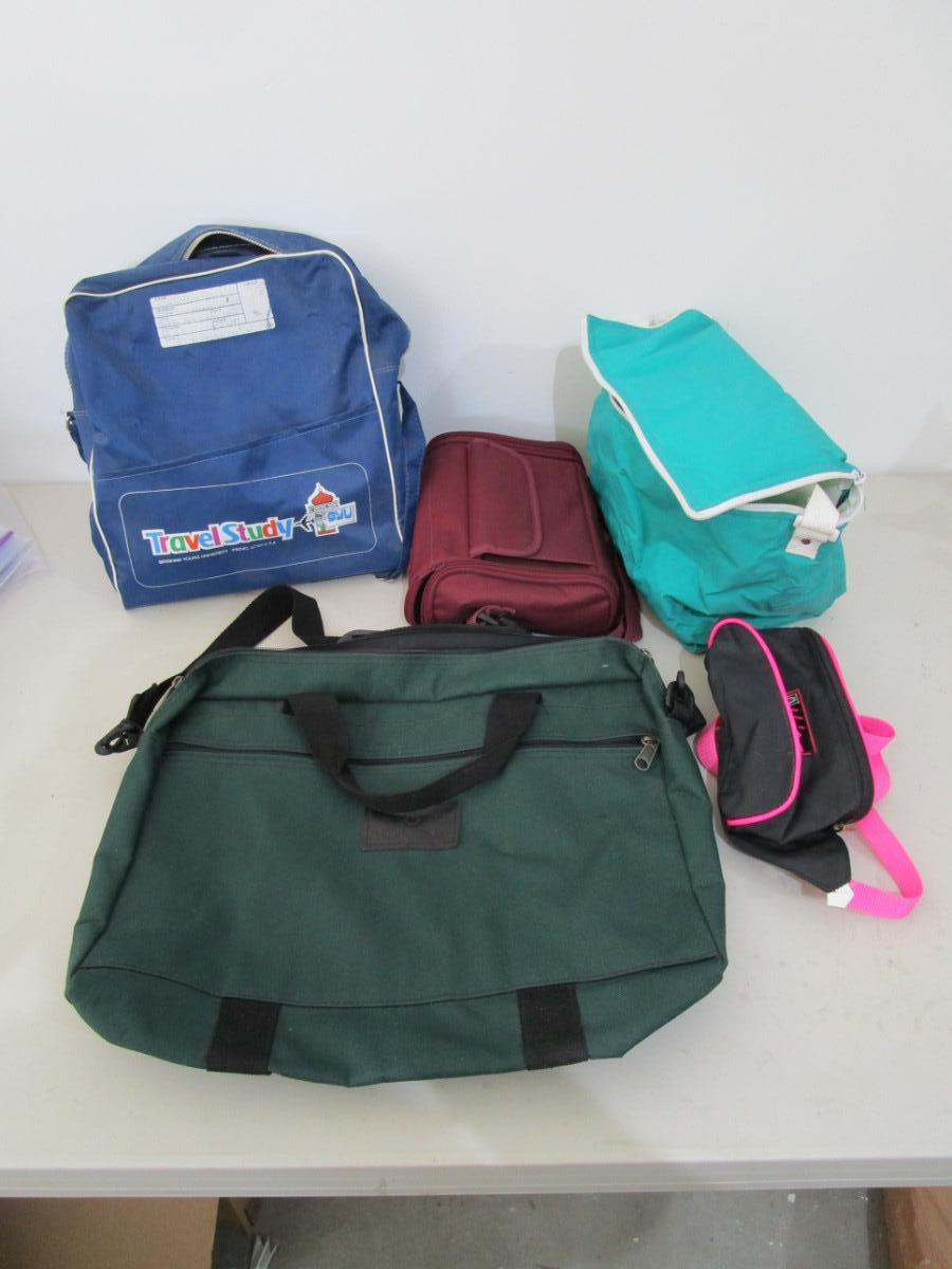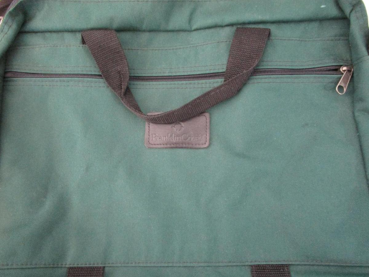 Travel bag 11"x12"x5", scripture case 9"x7"x3", insulated bag 11"x6"x8.5", fanny pack 7.5"x3"x4", Franklin Covey 16.5"x11"x3.5"