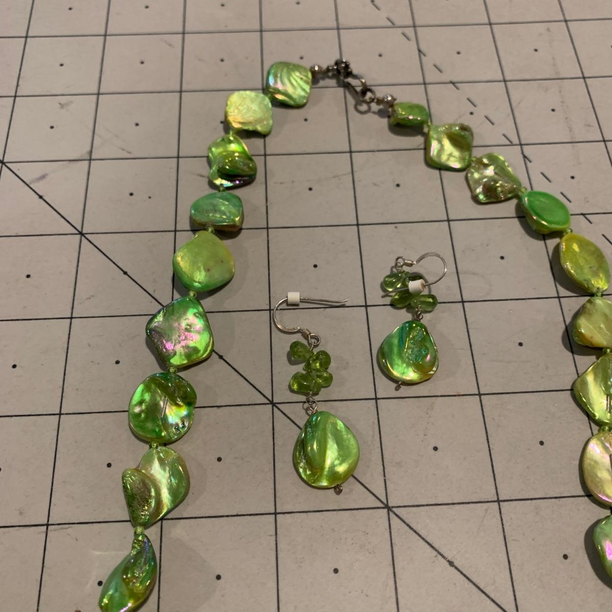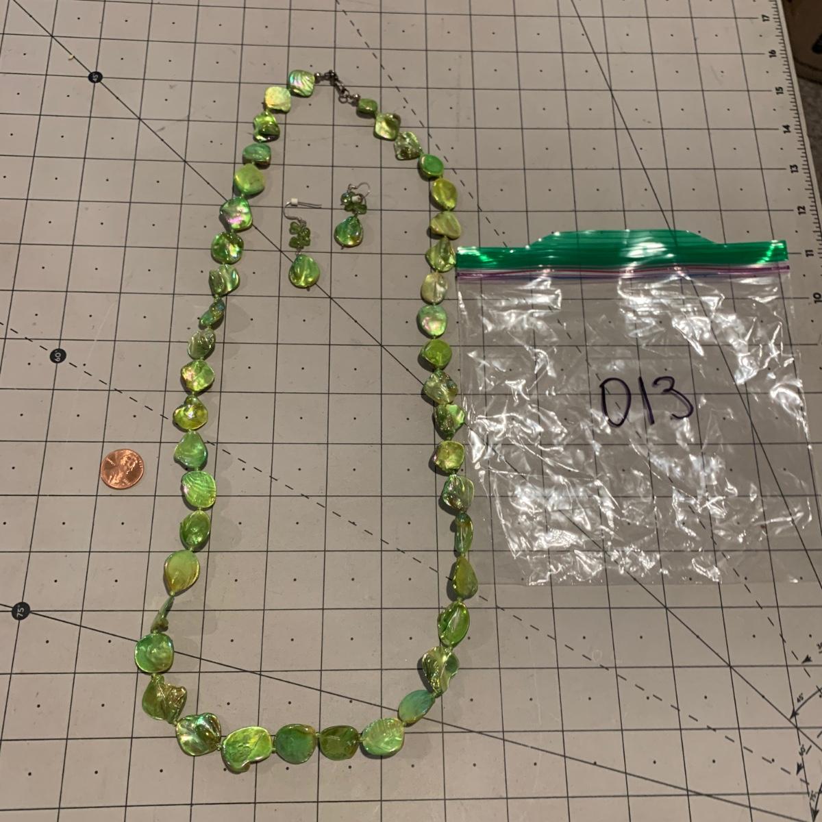 #220 Green Earrings and Necklace-D13