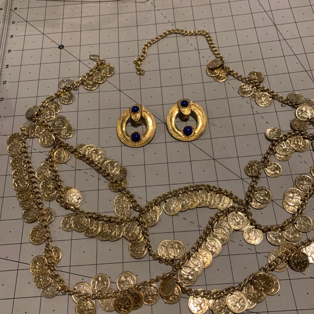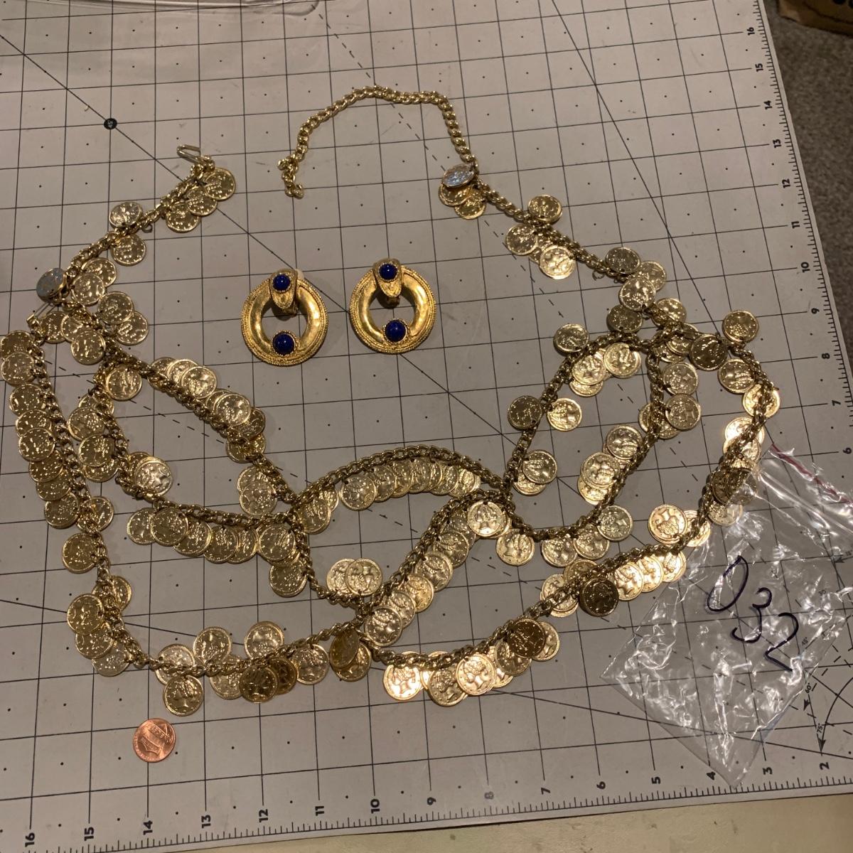 #241 Gold Dance Belt and Earrings-D32